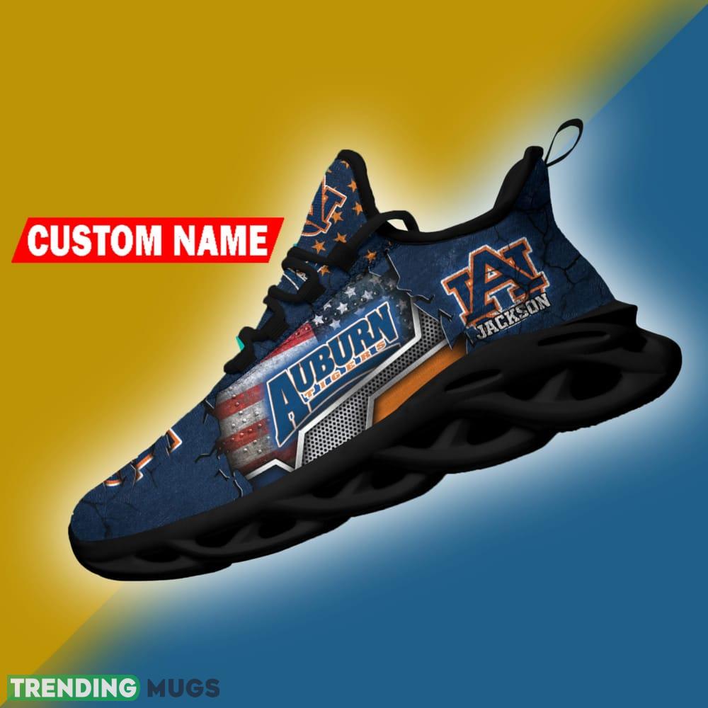Step up your game with the Auburn Tigers NCAA Sport Sneakers Flag Pattern Max Soul Shoes Personalized! These eye-catching sneakers are a must-have for any die-hard Auburn Tigers fan.