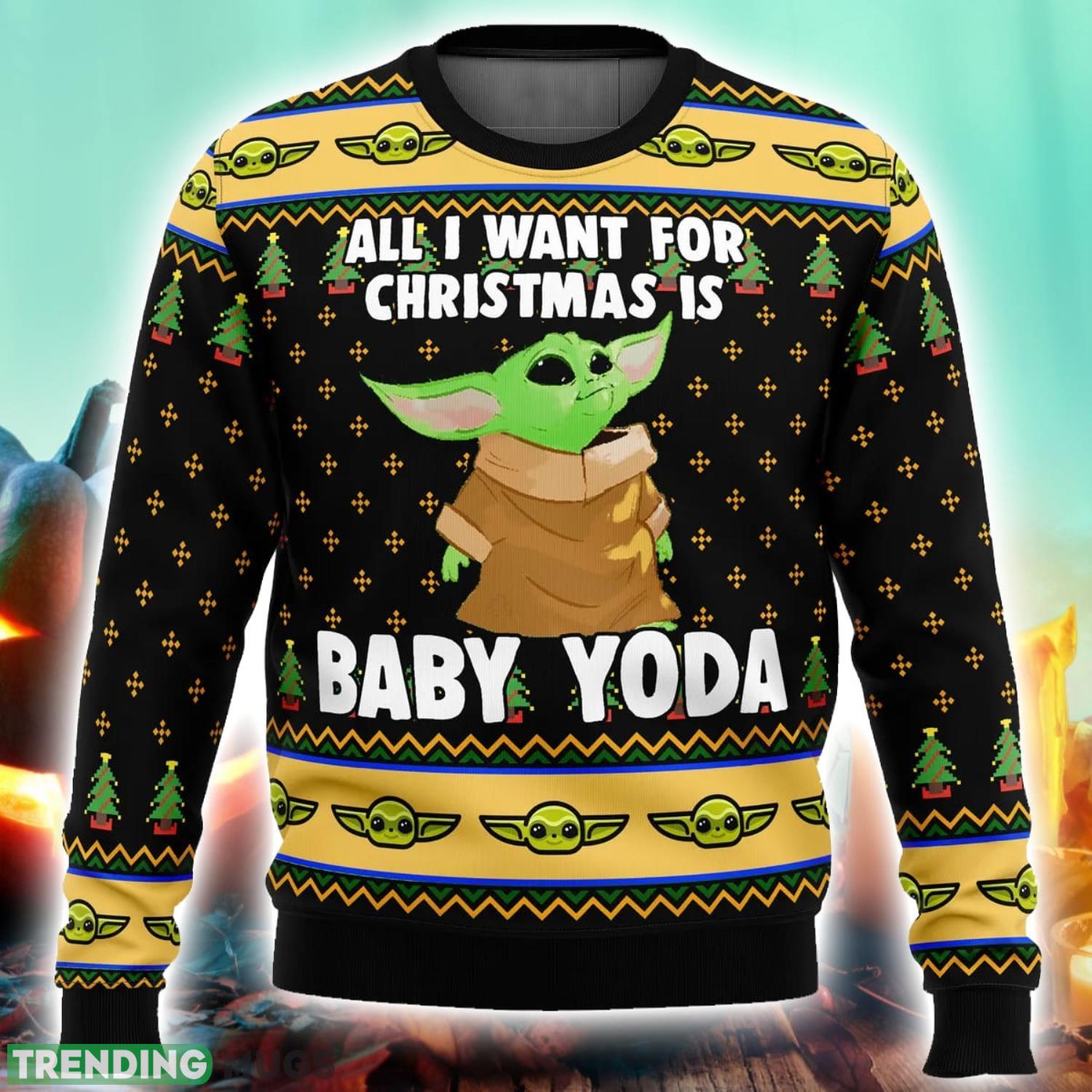 Baby Yoda All I Want Mandalorion Star Wars Ugly Christmas Sweater 3D All Over Printed Christmas Sweater Product Photo 1