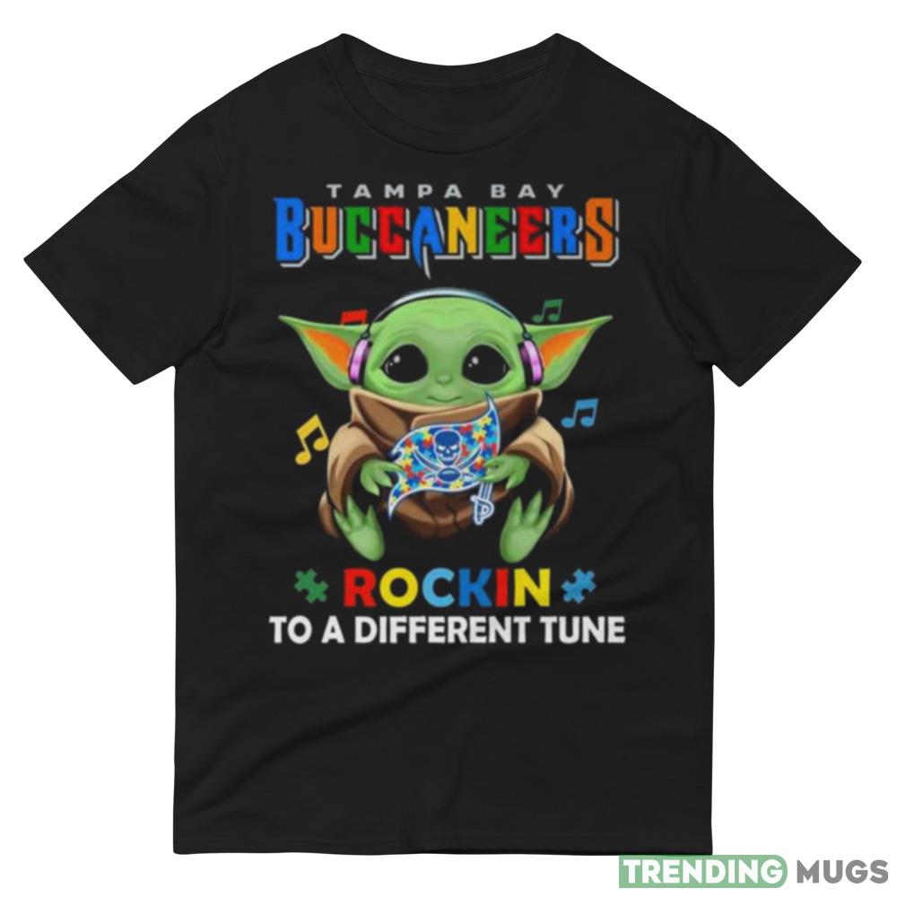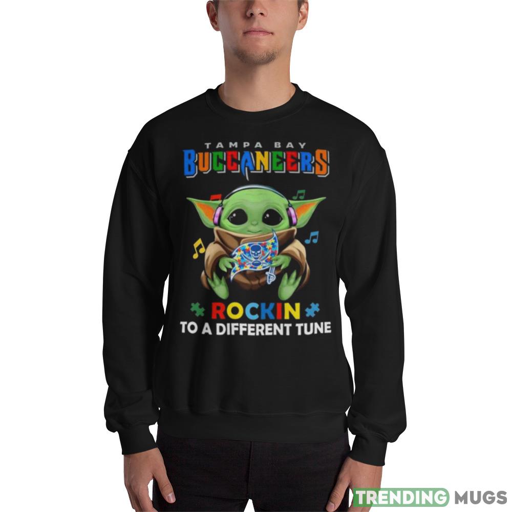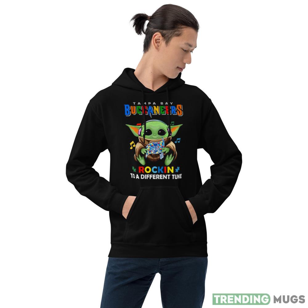 Some of the Baby Yoda Hug Tampa Bay Buccaneers Autism Rockin To A Different Tune shirt photos