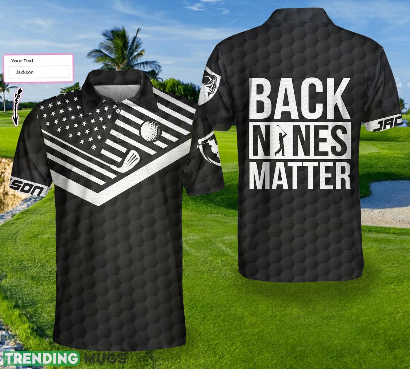 Back Nines Matter, Black Theme American Flag, Best Golf Shirt Polo Shirt Custom Name Polo Shirt
