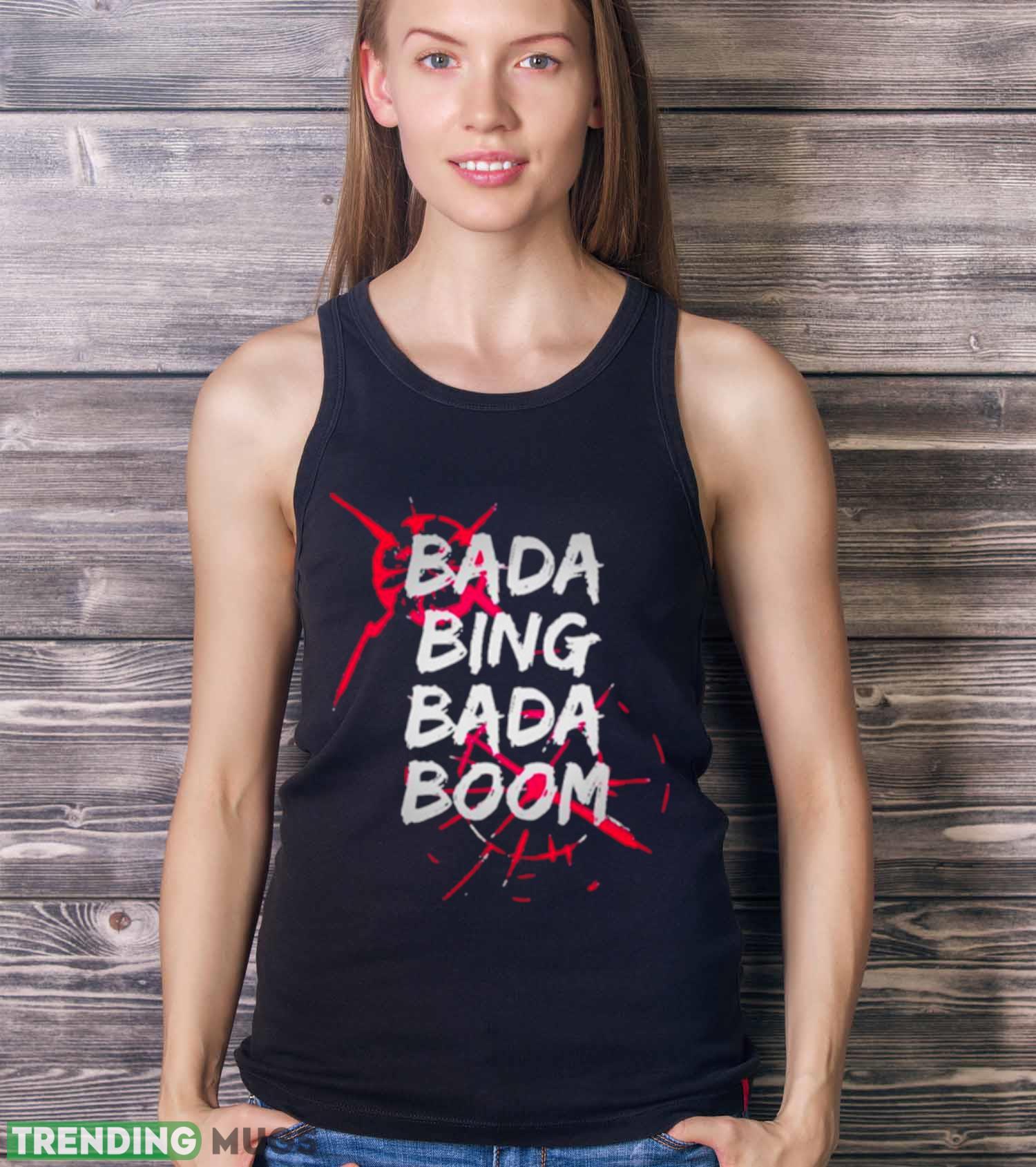 Featuring a bold and eye-catching design, this shirt showcases the iconic phrase “Bada Bing Bada Boom” in a vibrant print that exudes confidence and charisma. Whether you’re heading out for a night on the town or simply want to add a touch of urban flair to your everyday wardrobe, this shirt is the perfect choice.