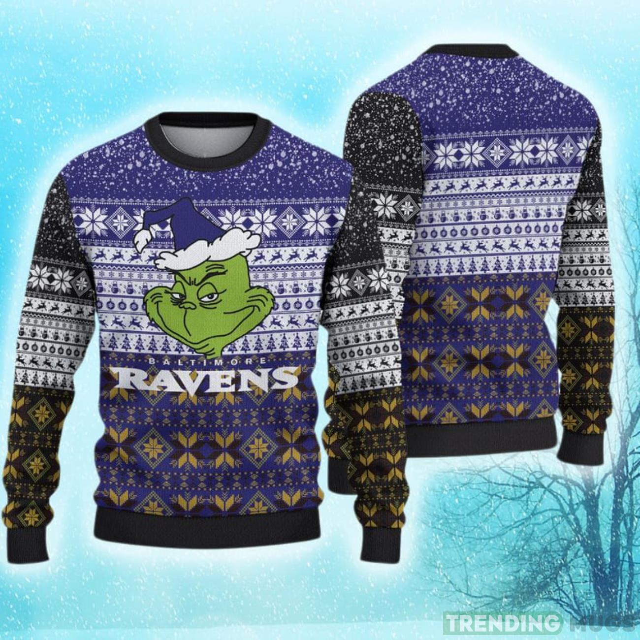 Baltimore Ravens Christmas Grinch Hot Trending Ugly Sweater For Fans Product Photo 1