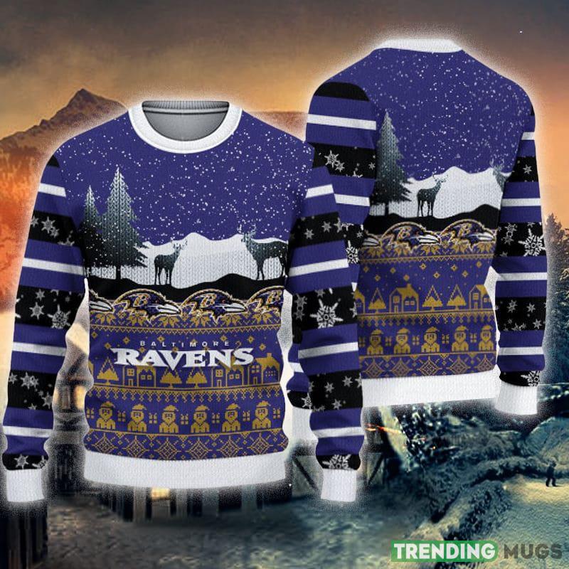 Baltimore Ravens Christmas Reindeers Pattern Knitted Ugly Christmas Sweater AOP Gift For Men And Women Informations: