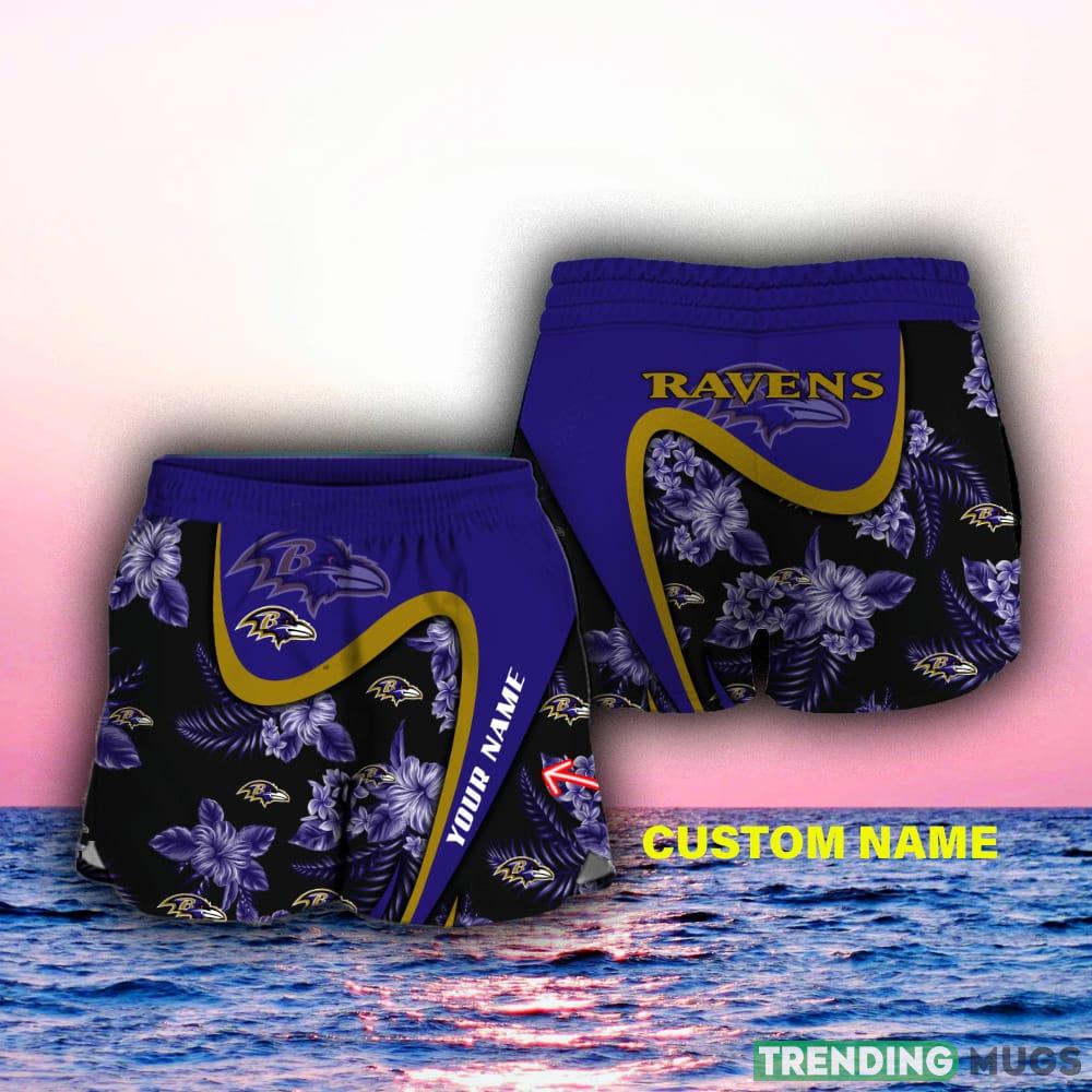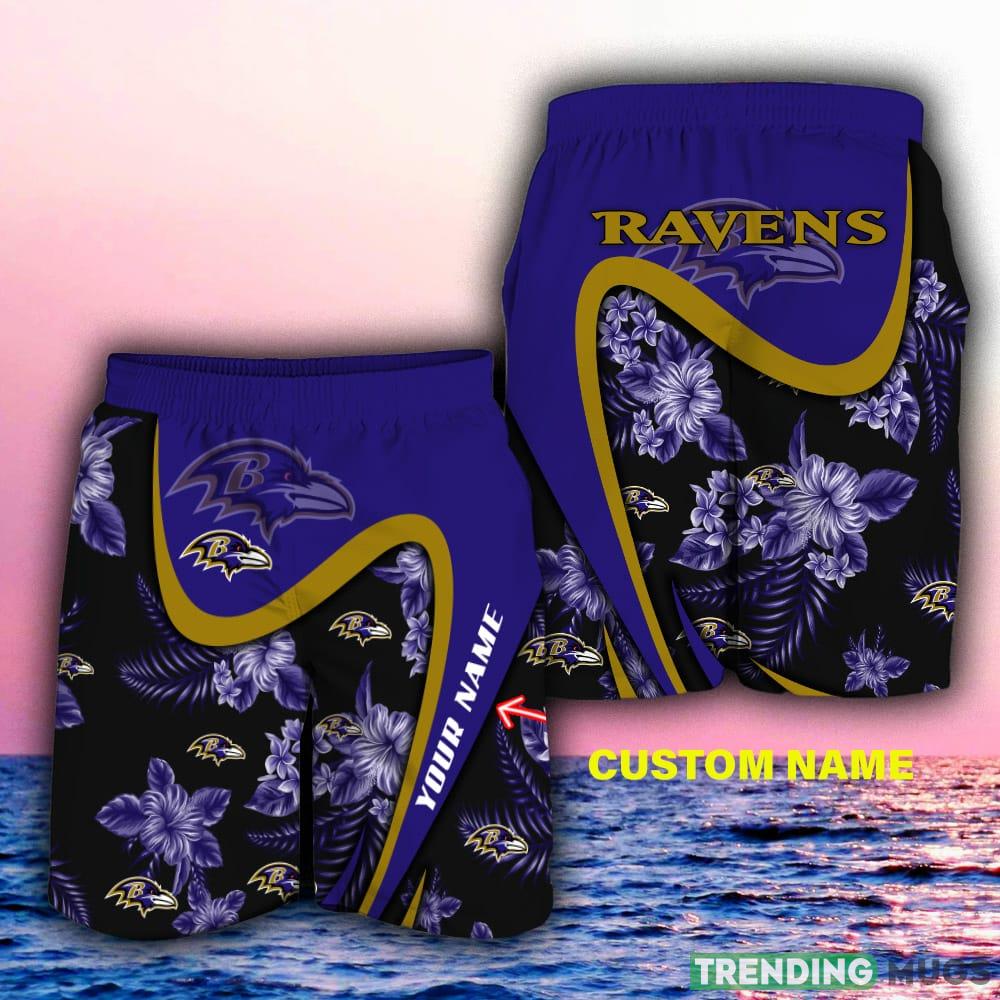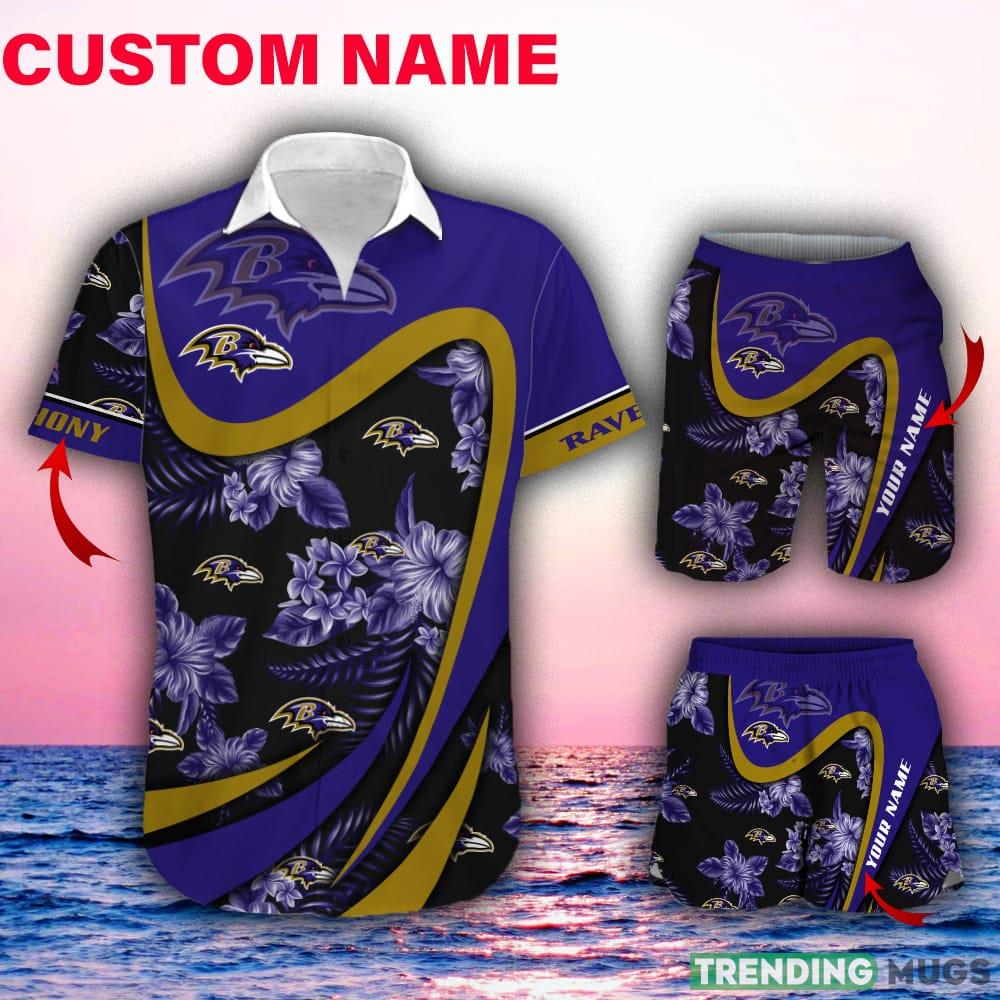 Baltimore Ravens Custom Name NFL Floral Hawaiian Shirt And Shorts Gift For Men And Women Fans