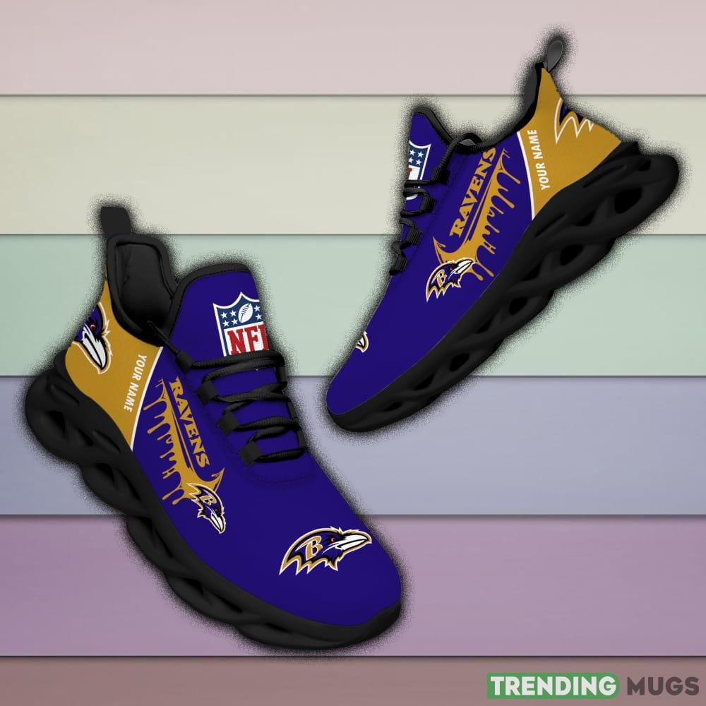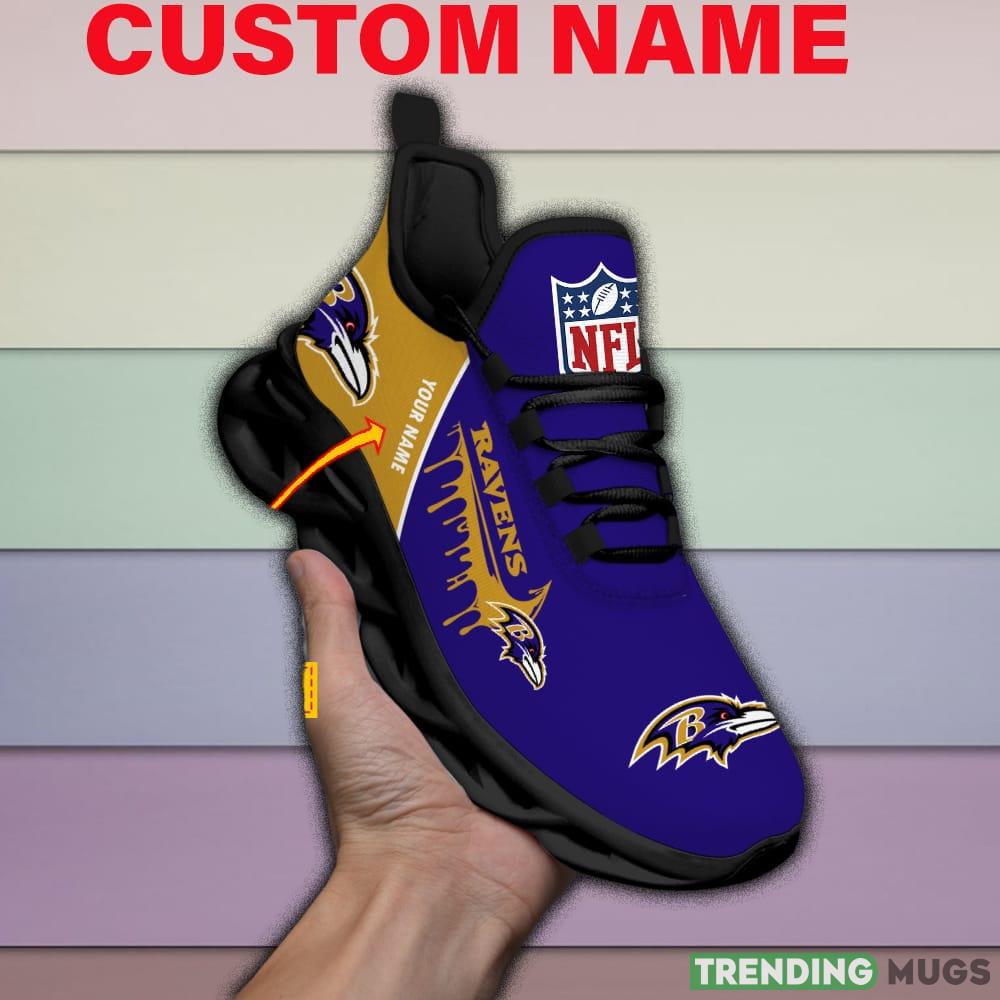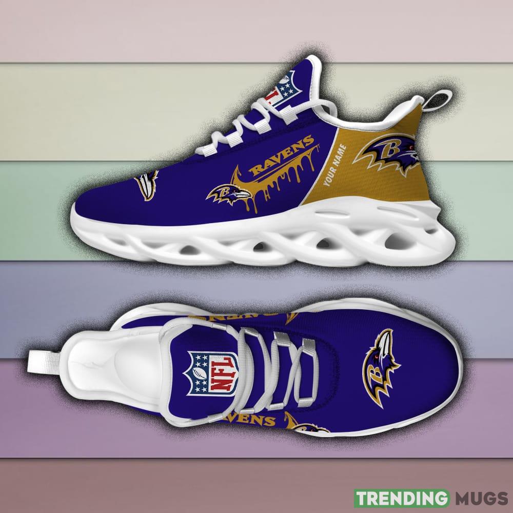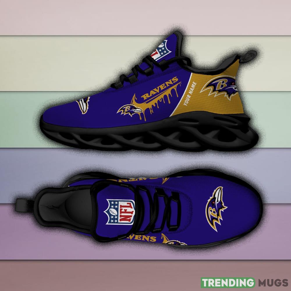 Don’t miss out on the opportunity to show off your Baltimore Ravens pride while staying on top of the latest footwear trends. Order your own pair of Baltimore Ravens Drip Logo NFL Max Soul Shoes Custom Name For Men And Women Running Sneakers now and step into game day fashion like never before!