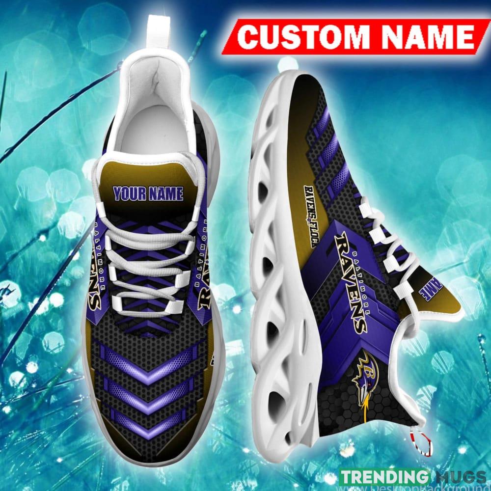 This Baltimore Ravens Expressive Custom Name Chunky Sneaker AOP Gift Fans Max Soul Shoes is a breathable, lightweight, and comfortable casual outdoor shoe that has a unique design. It is made of a mesh fabric which makes it sweat absorbent and breathable, while the rubber bottom ensures traction, comfort, and durability. It is available in two colors: black or white sole. There are two styles of shoelace holes so you can choose your preference.