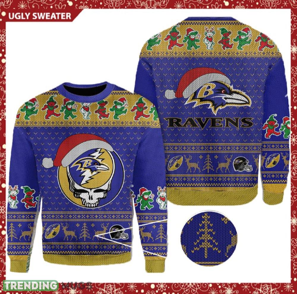 Baltimore Ravens Grateful Dead SKull And Bears Ugly Christmas Sweater Informations: