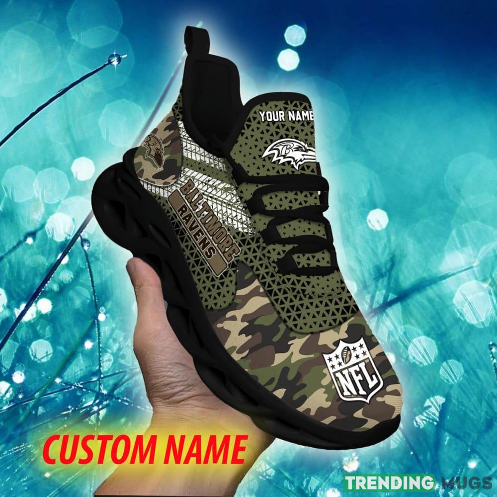 But that’s not all – these sneakers offer a customizable feature that sets them apart from the rest. You can personalize them with your own name, making them a truly one-of-a-kind accessory. Show off your unwavering support for the Ravens with every step you take!