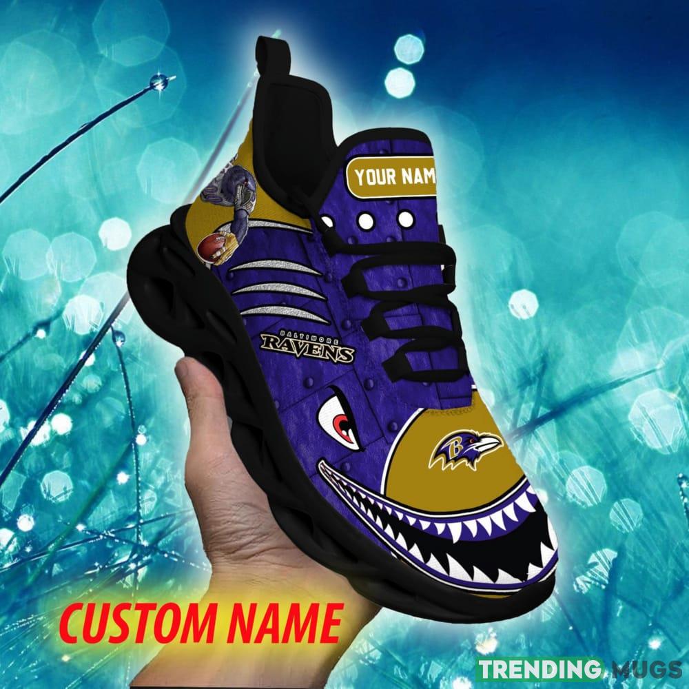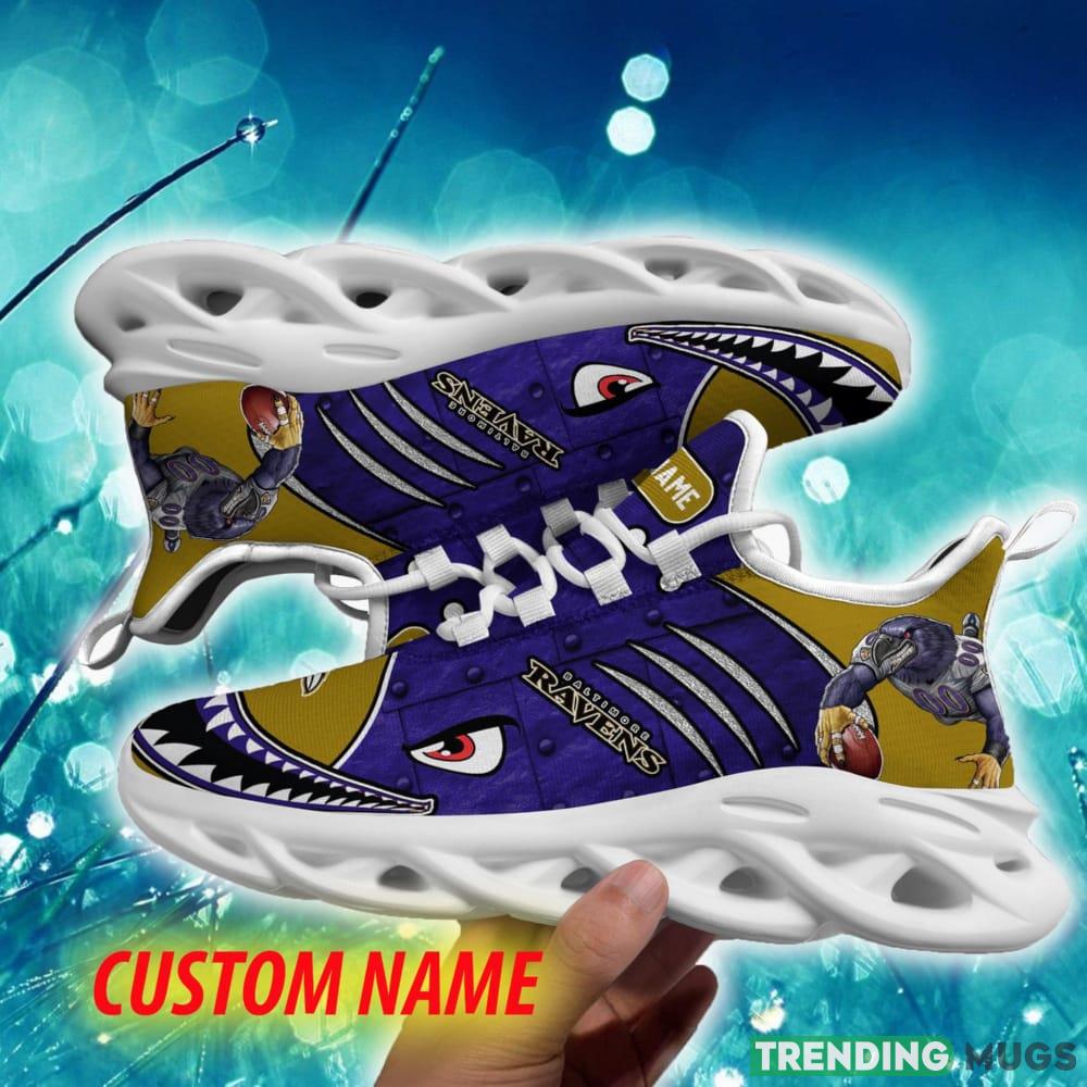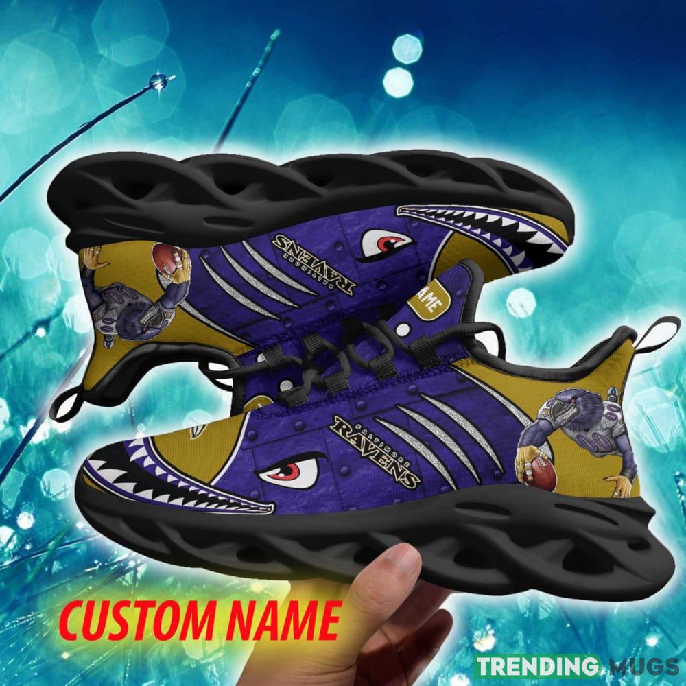 This Baltimore Ravens Inspiration Custom Name Chunky Sneaker AOP Gift Fans Max Soul Shoes is a breathable, lightweight, and comfortable casual outdoor shoe that has a unique design. It is made of a mesh fabric which makes it sweat absorbent and breathable, while the rubber bottom ensures traction, comfort, and durability. It is available in two colors: black or white sole. There are two styles of shoelace holes so you can choose your preference.
