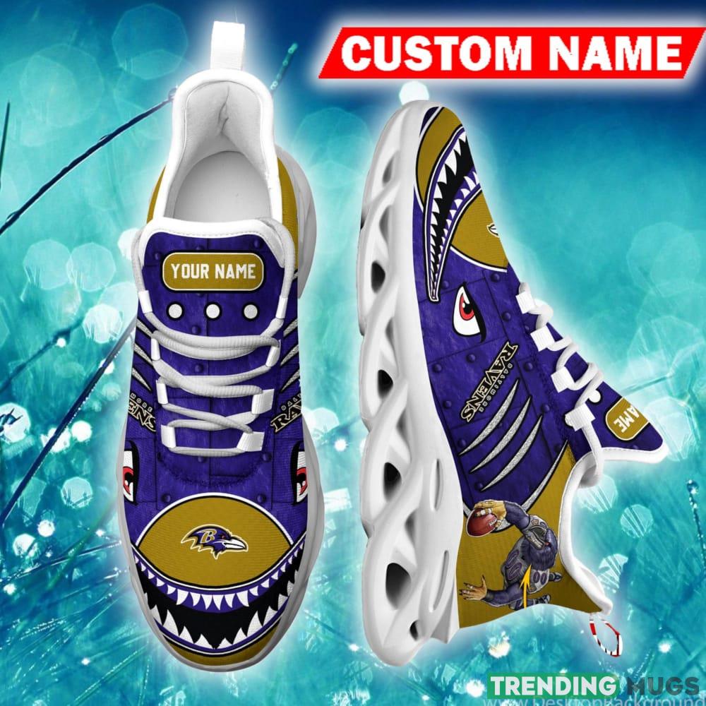 But what truly sets these shoes apart is the personalized touch they offer. With our custom name option, you can proudly display your unique identity as a devoted Ravens supporter. Whether it’s your own name, a favorite player, or a special message, this customization adds that extra layer of individuality and makes these sneakers a one-of-a-kind gift for yourself or a loved one.