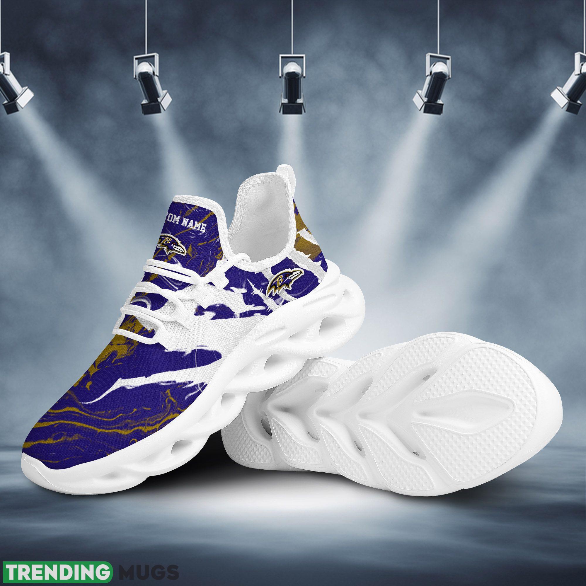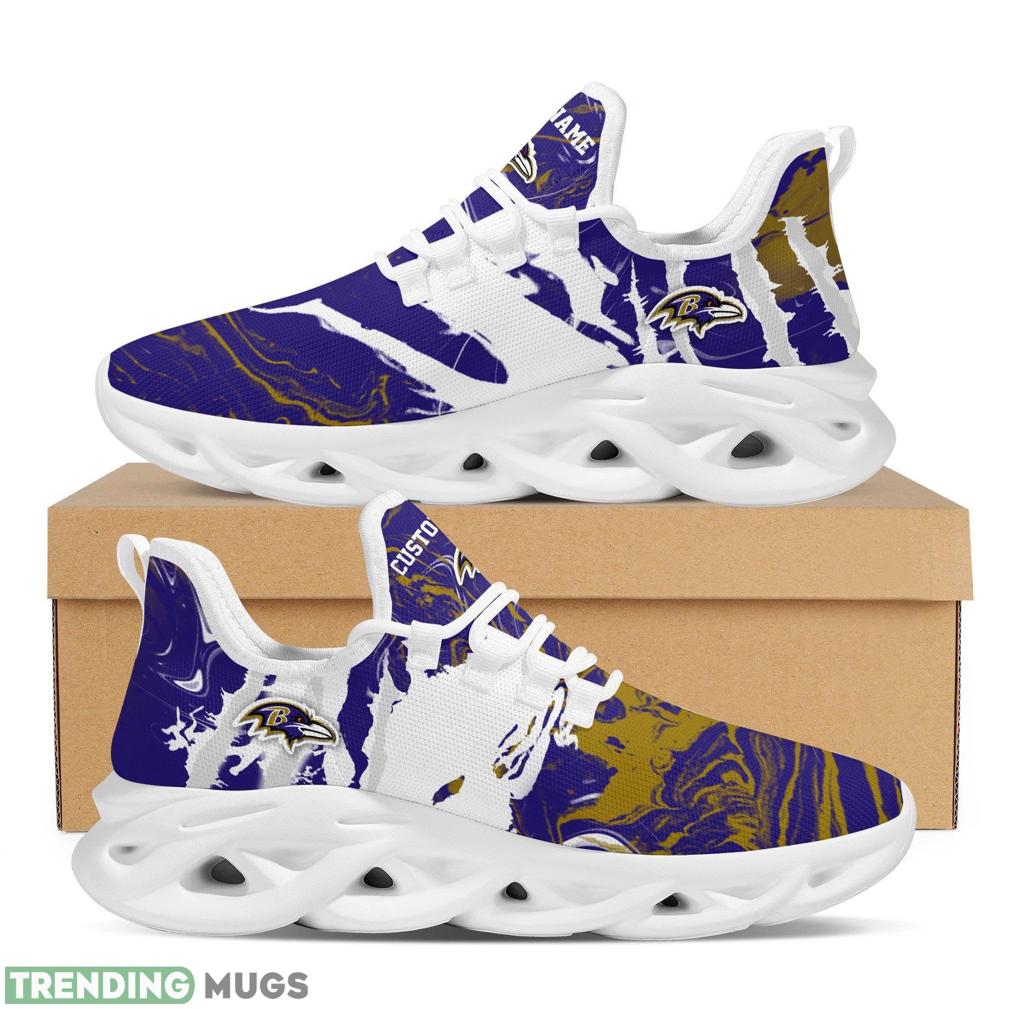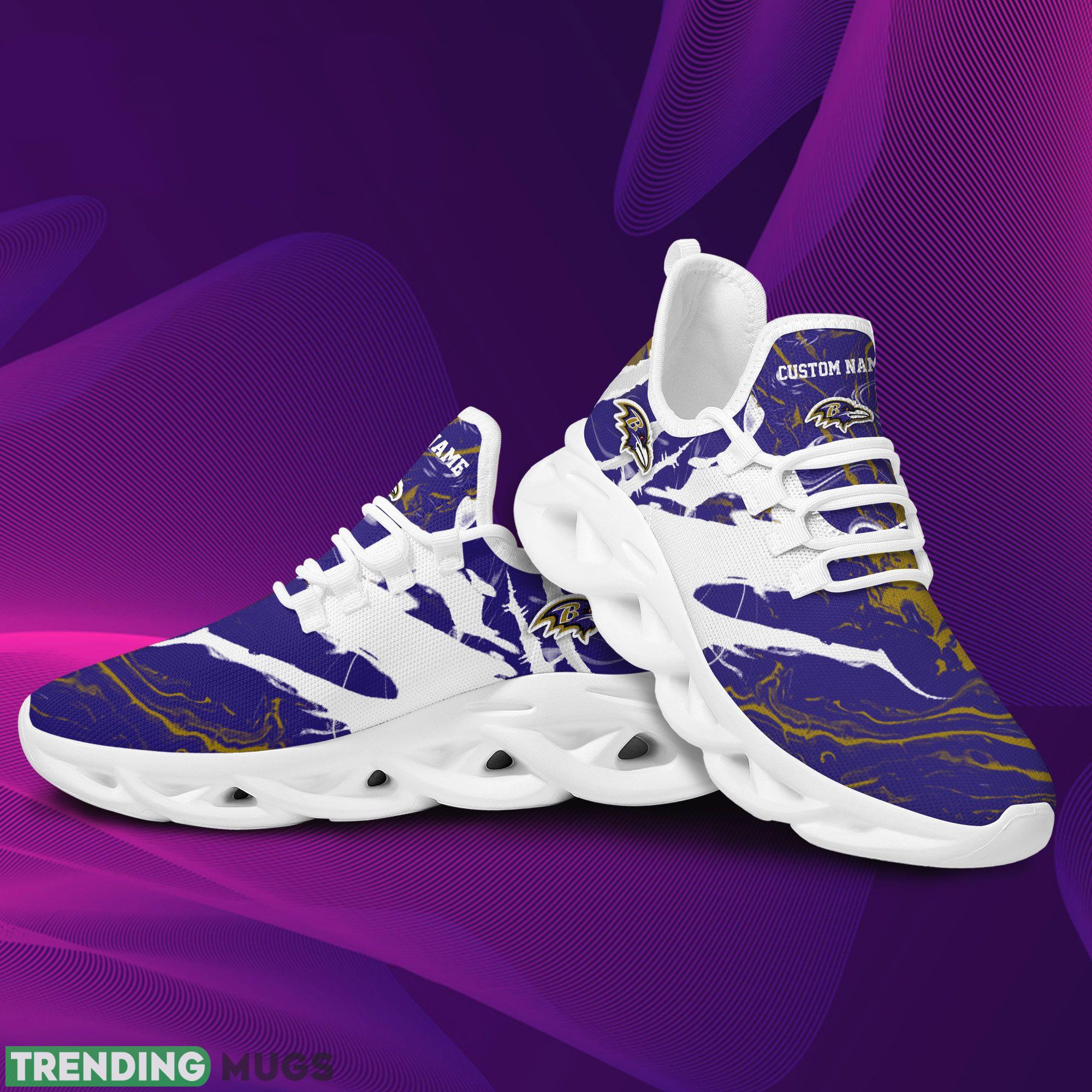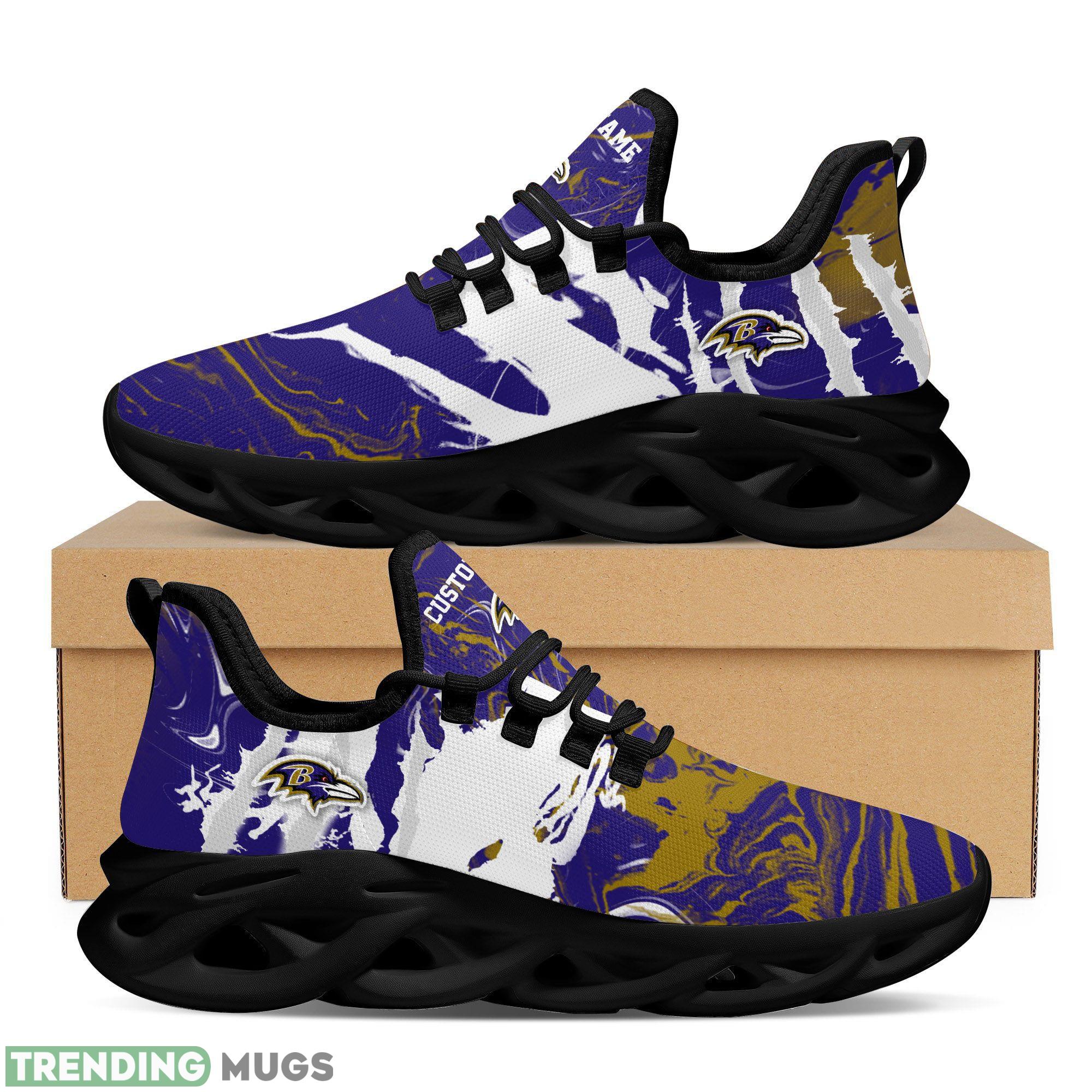 Don’t miss out on the opportunity to showcase your team spirit and individuality with these one-of-a-kind sneakers. Order your Baltimore Ravens Logo Slick Running Sneaker Custom Name Max Soul Shoes today and take your shoe game to new heights!