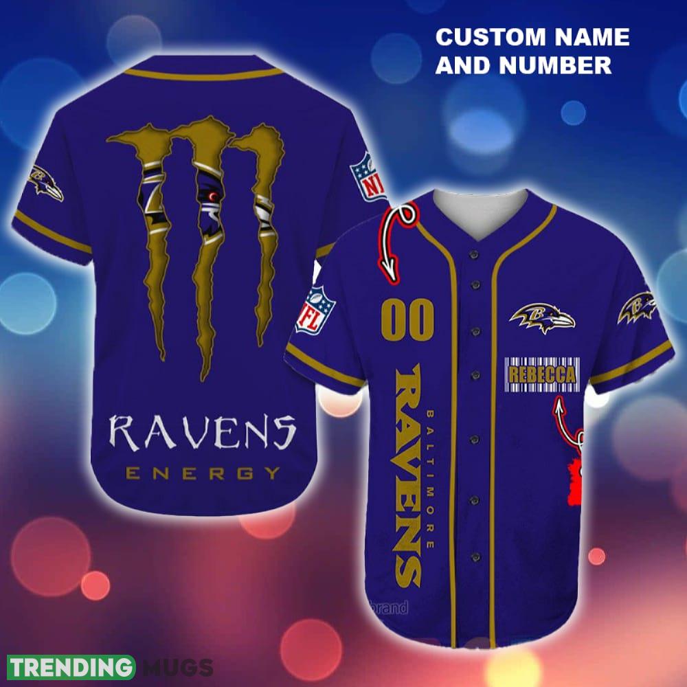Baltimore Ravens Monster Energy Nfl Baseball Jersey Shirt Custom Number And Name Information: