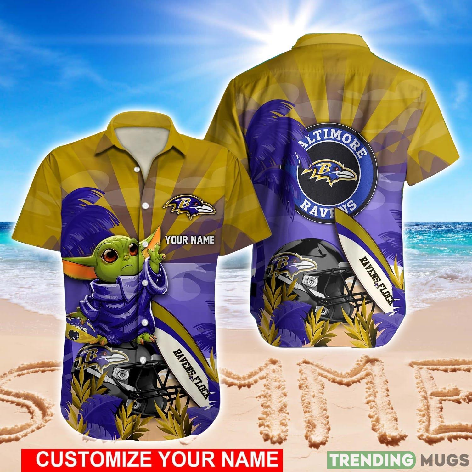 Baltimore Ravens NFL Baby Yoda Hawaiian shirt Custom Name Special Summer Gift For Fans Details: