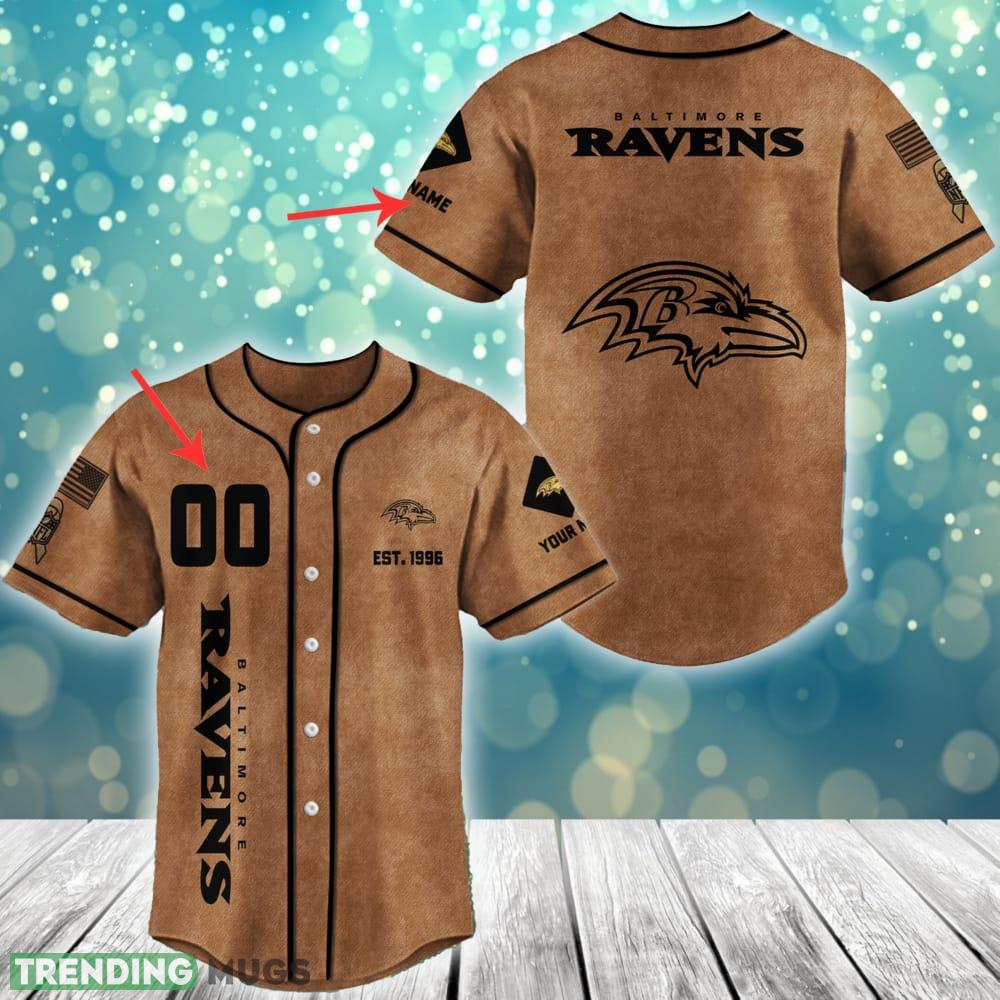 Baltimore Ravens NFL Baseball Jersey Shirt Brown Custom Number And Name