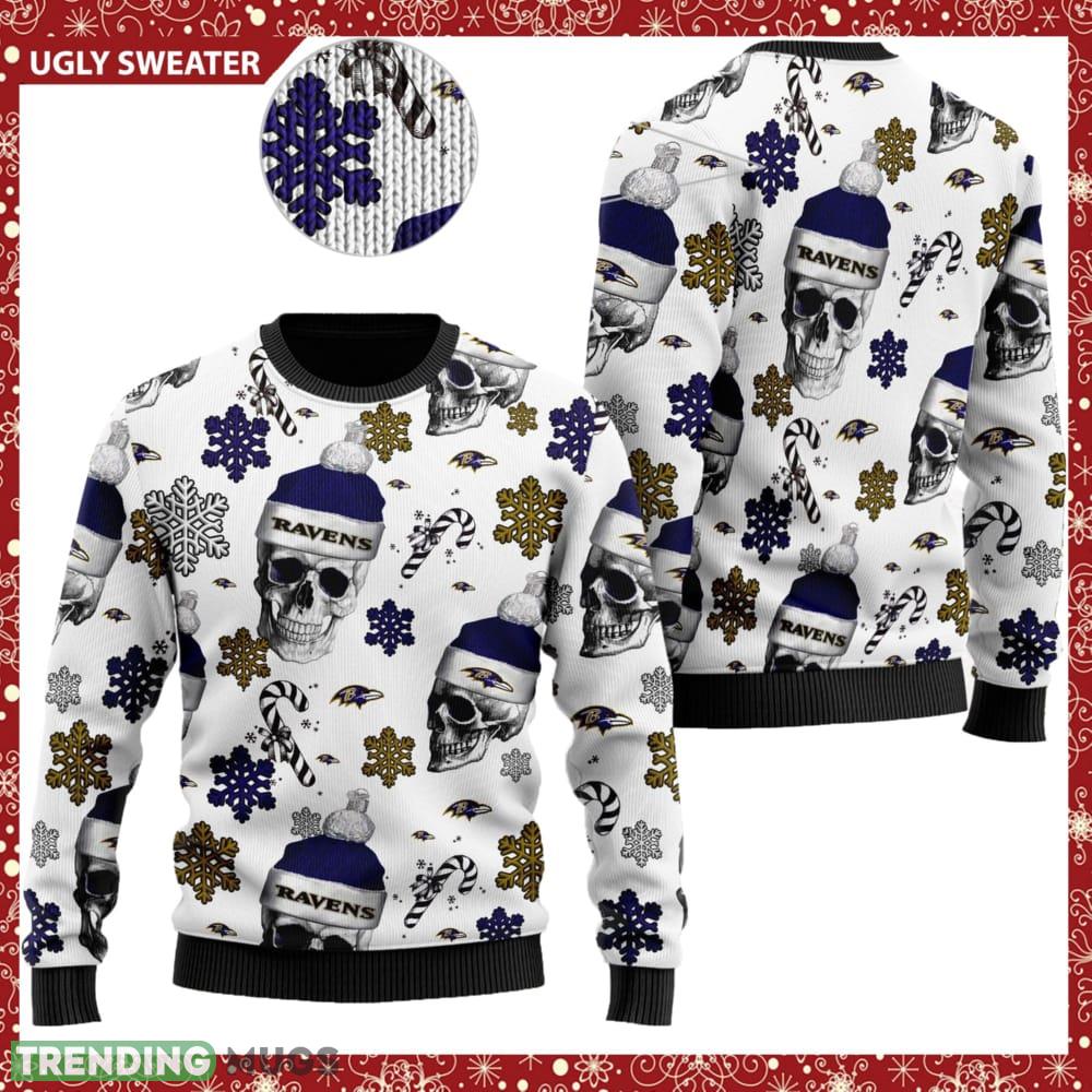 Baltimore Ravens NFL Football Team Santa Skulls Ugly Christmas Sweater