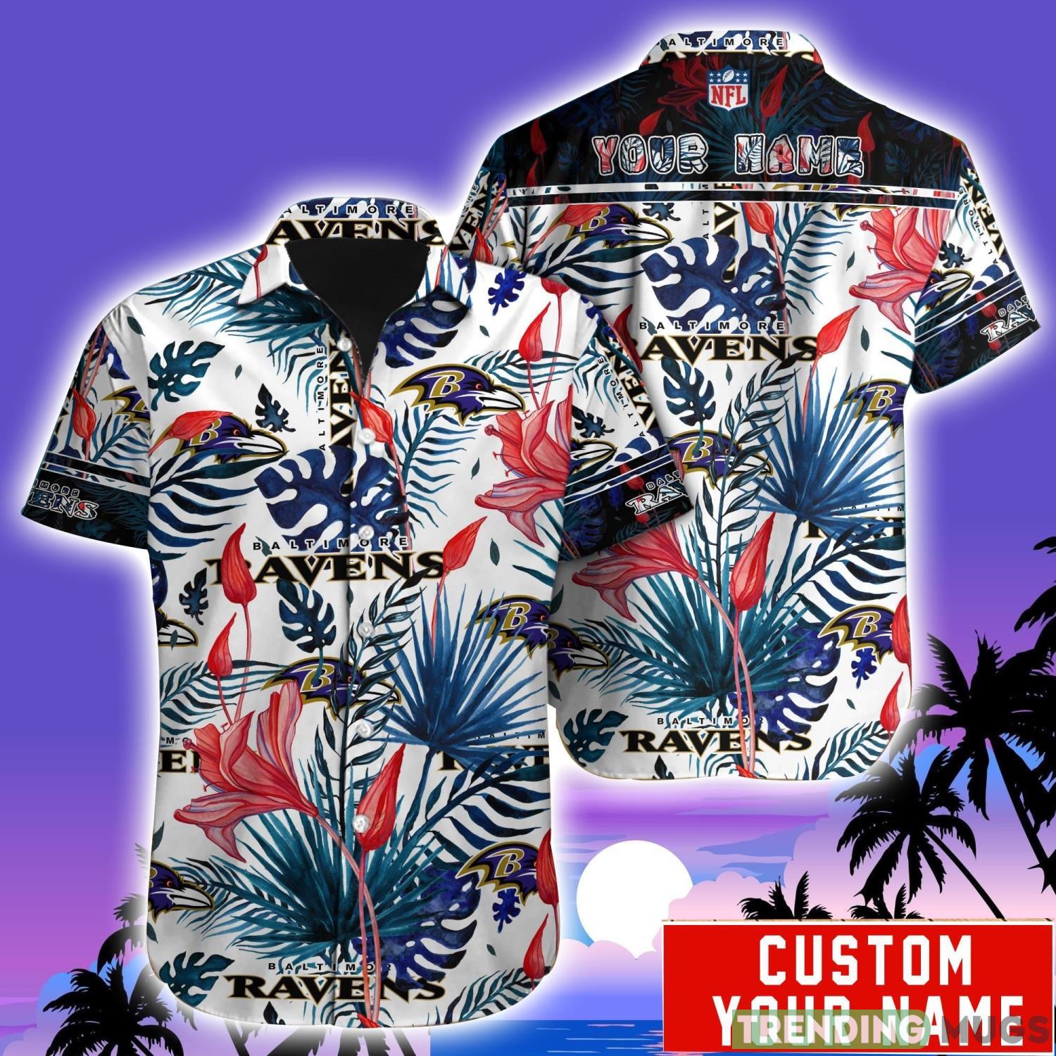 Baltimore Ravens NFL Team Aloha Hawaiian Shirt Custom Name For Fans Details: