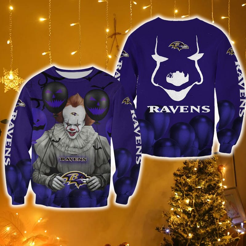 Baltimore Ravens Pennywise the Dancing Clown IT Hallowen Edition Unisex Soft Ugly Sweater For Men And Women Gift Fans Christmas Informations:
