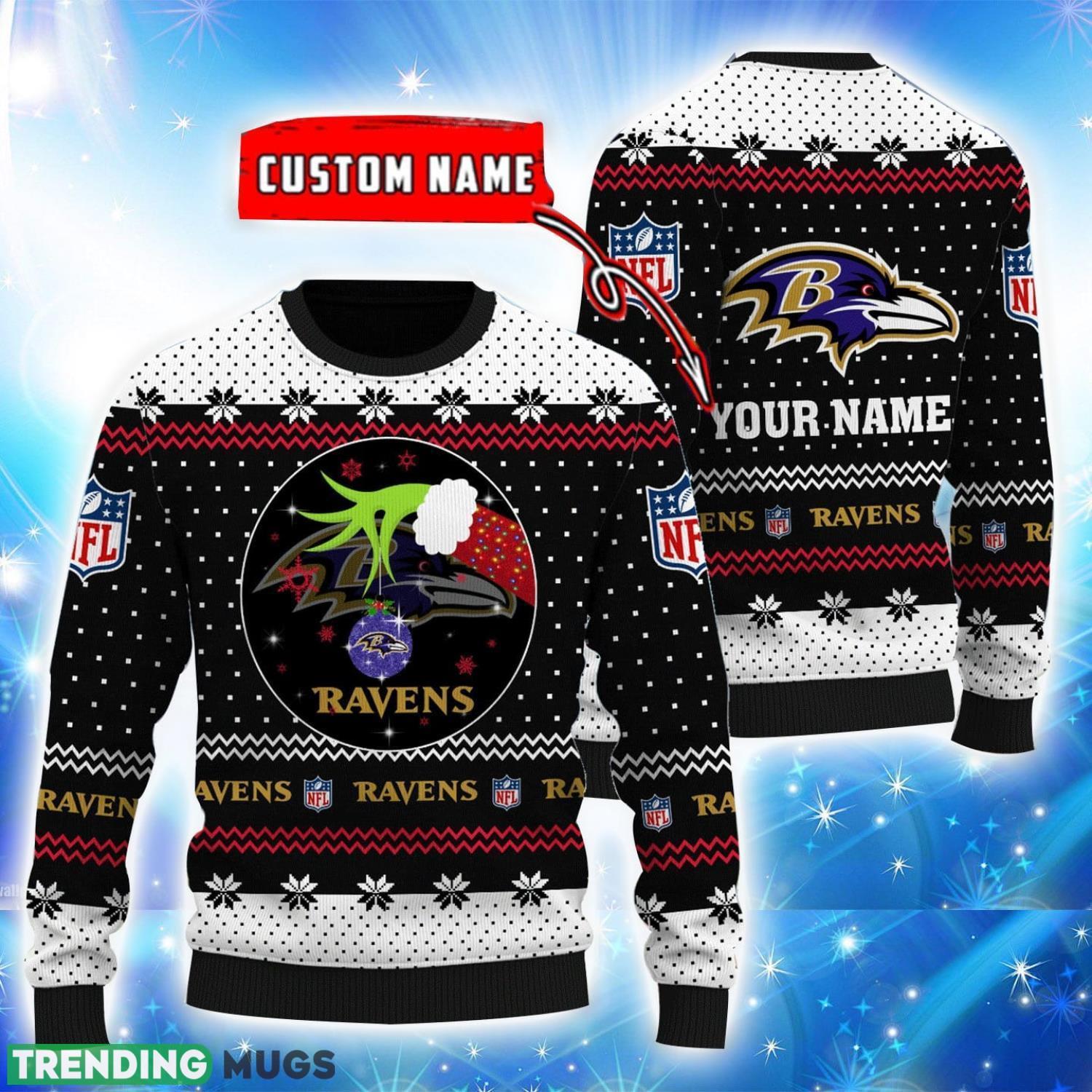 Baltimore Ravens Personalized Name 3D Ugly Christmas Sweater Informations: