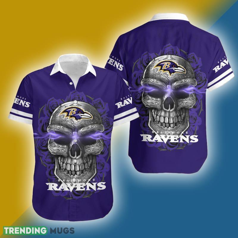 Baltimore Ravens Skull Carved Hawaiian Shirt Men Women Gift For Halloween Details: