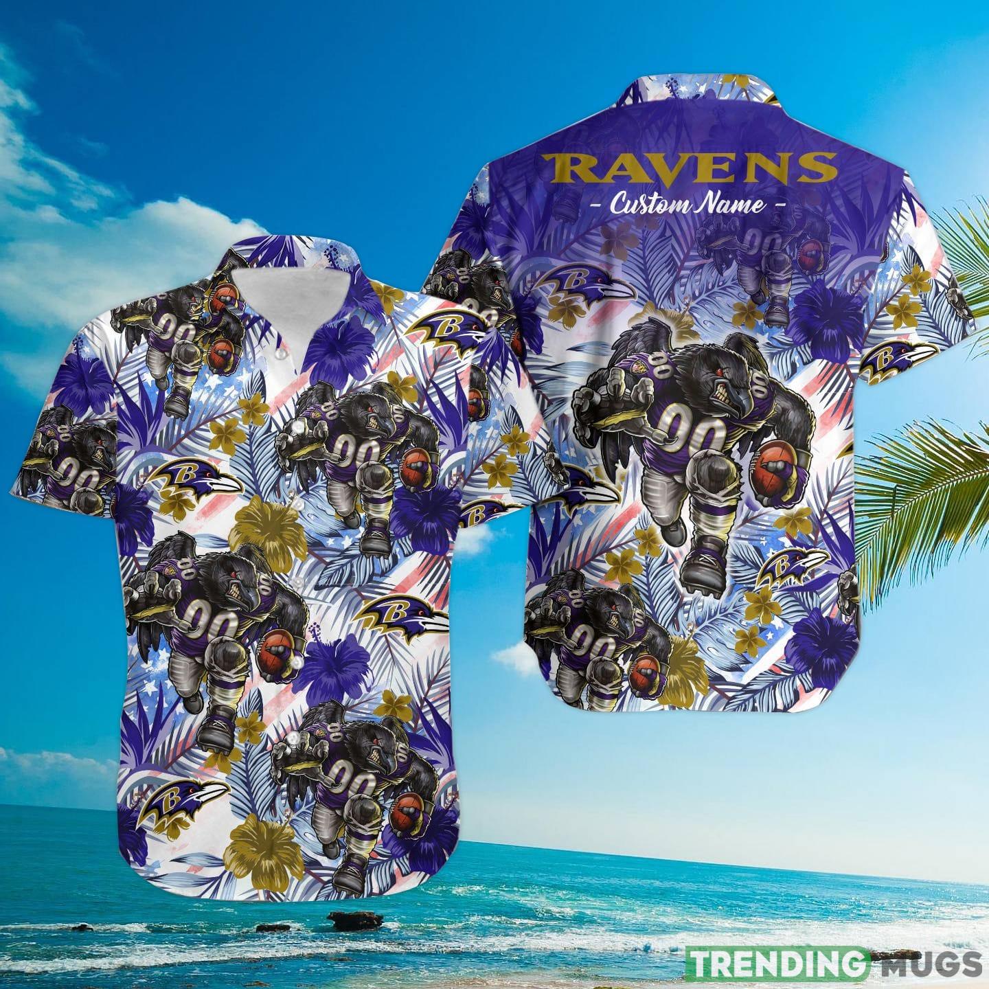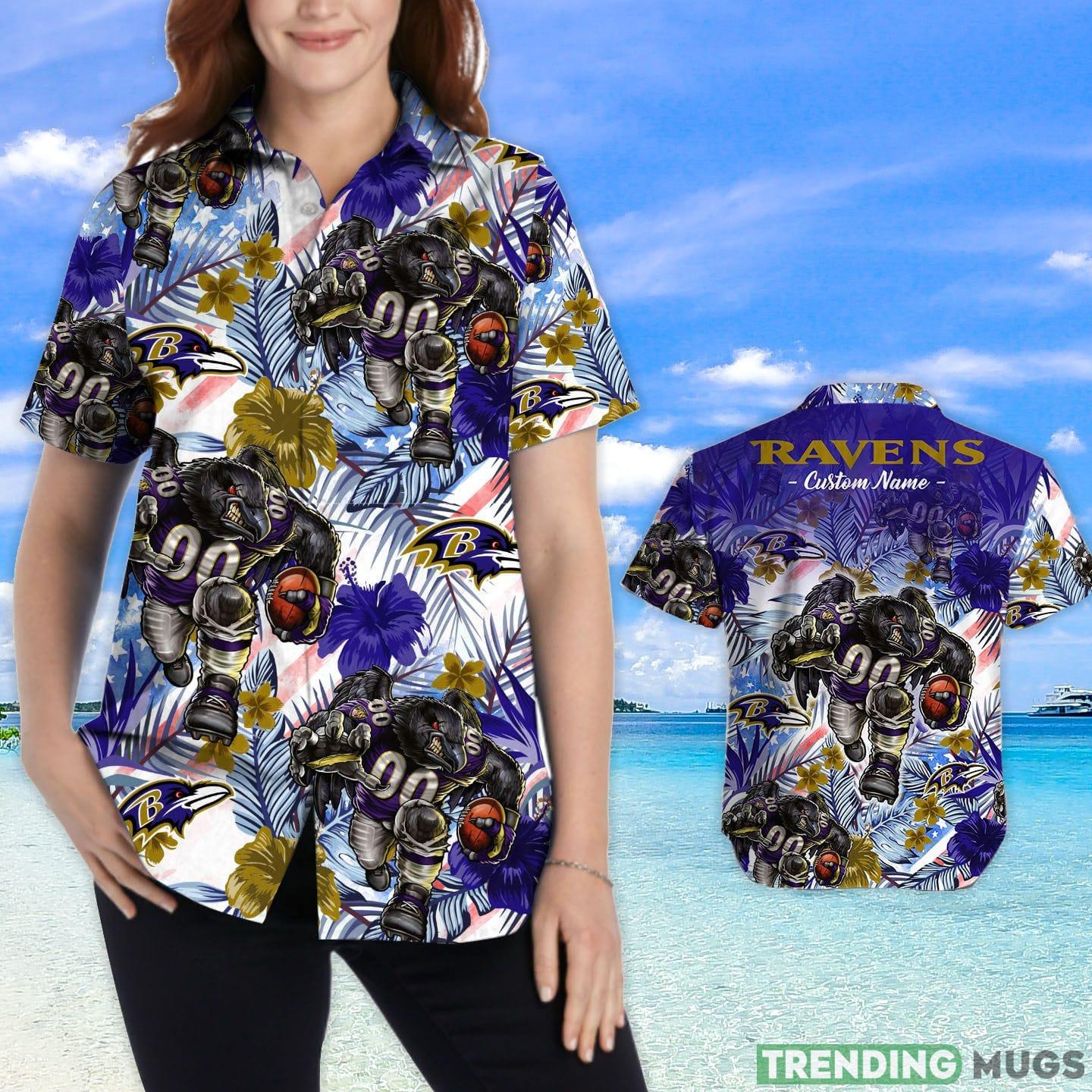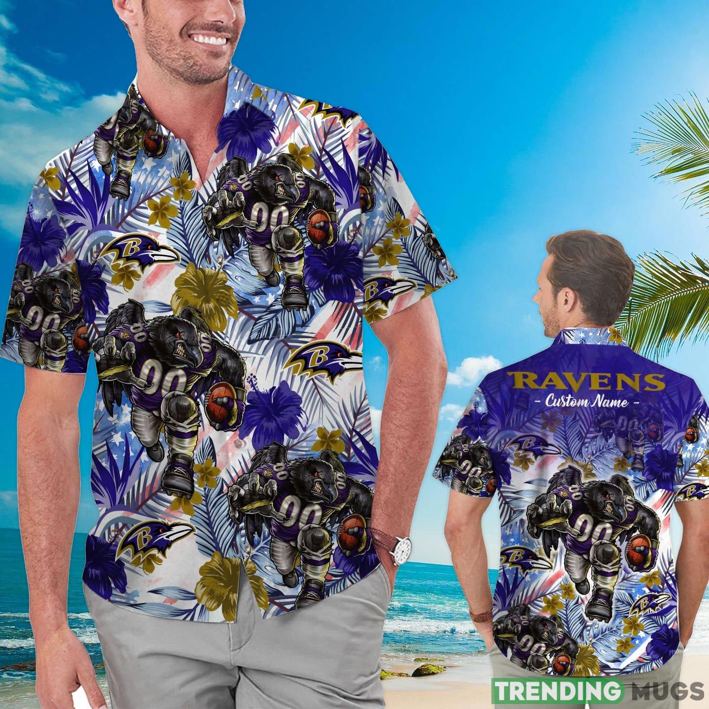 Some of the Baltimore Ravens Tropical Floral Custom Name Aloha Hawaiian Shirt photos