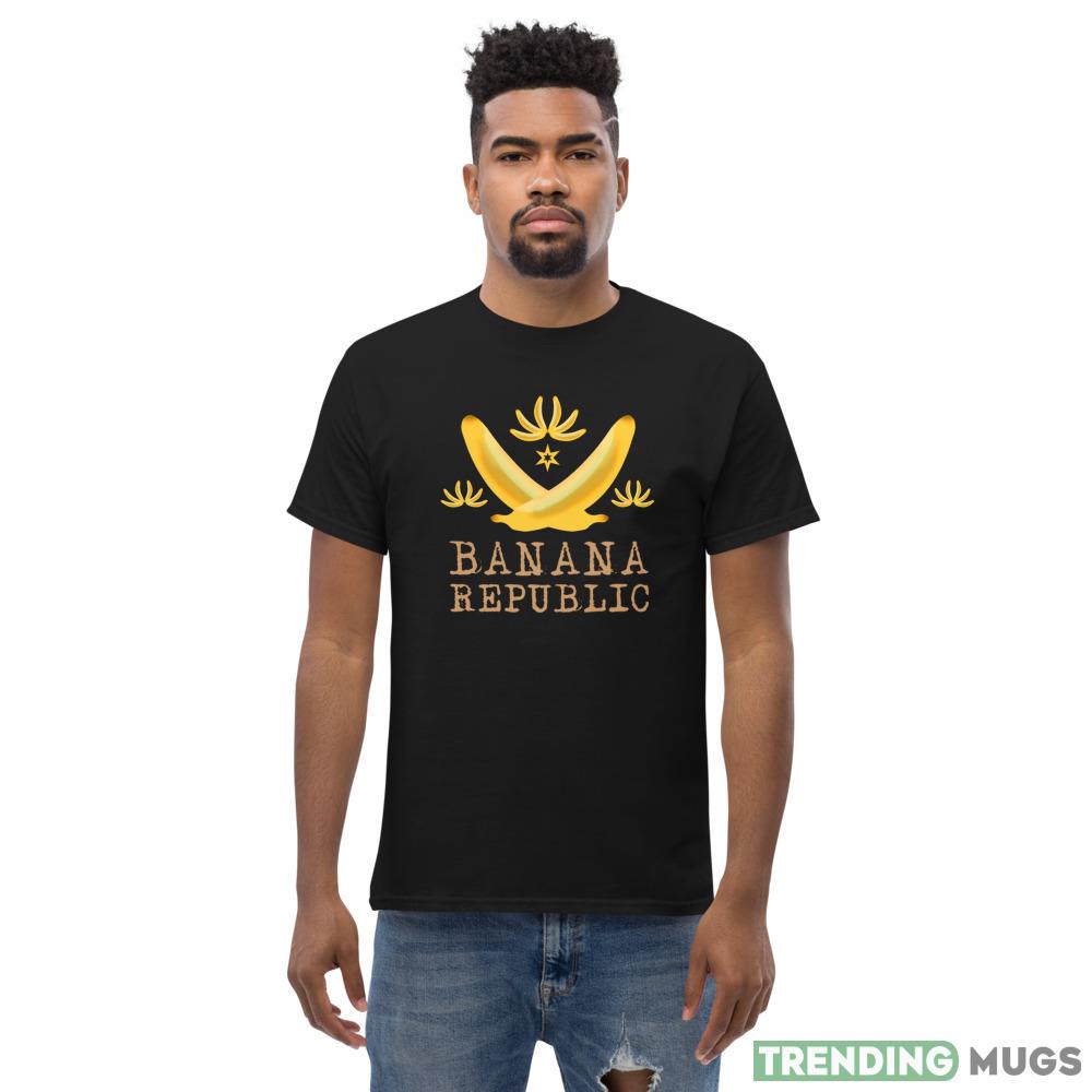 Featuring a bold print of the Banana Republic logo and the iconic phrase “Exporting a Single Product or Resource,” this t-shirt is a true testament to the brand’s commitment to quality and excellence. The eye-catching design is sure to turn heads and make you the envy of all your friends.
