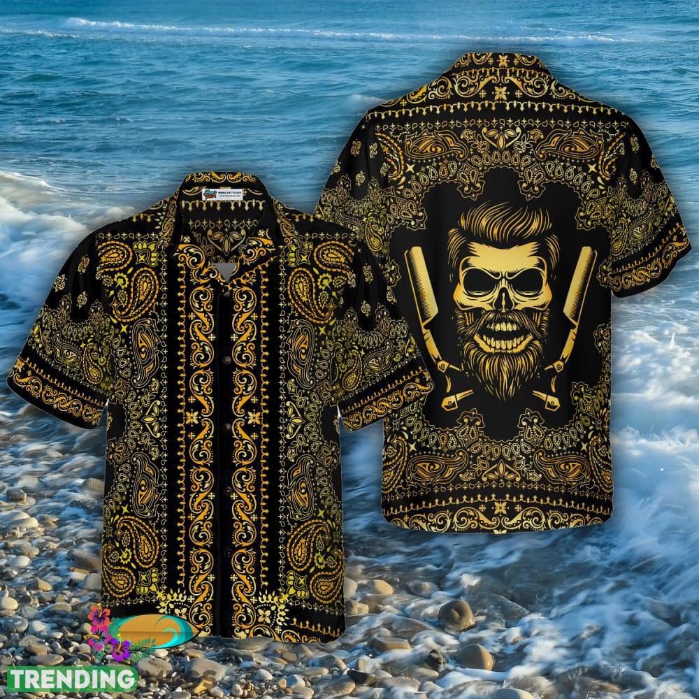 So why wait? Add this must-have shirt to your collection today and experience the ultimate in style and comfort. Don’t miss out on your chance to own the Barber Bandana Style Gold 3D Hawaiian Shirt for Men and Women!