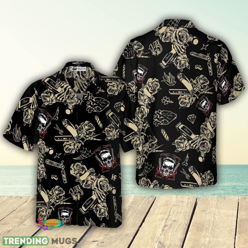 Looking for a stylish yet edgy fashion statement? Look no further than our Barber Shop Skull 3D Hawaiian Shirt for Men and Women!