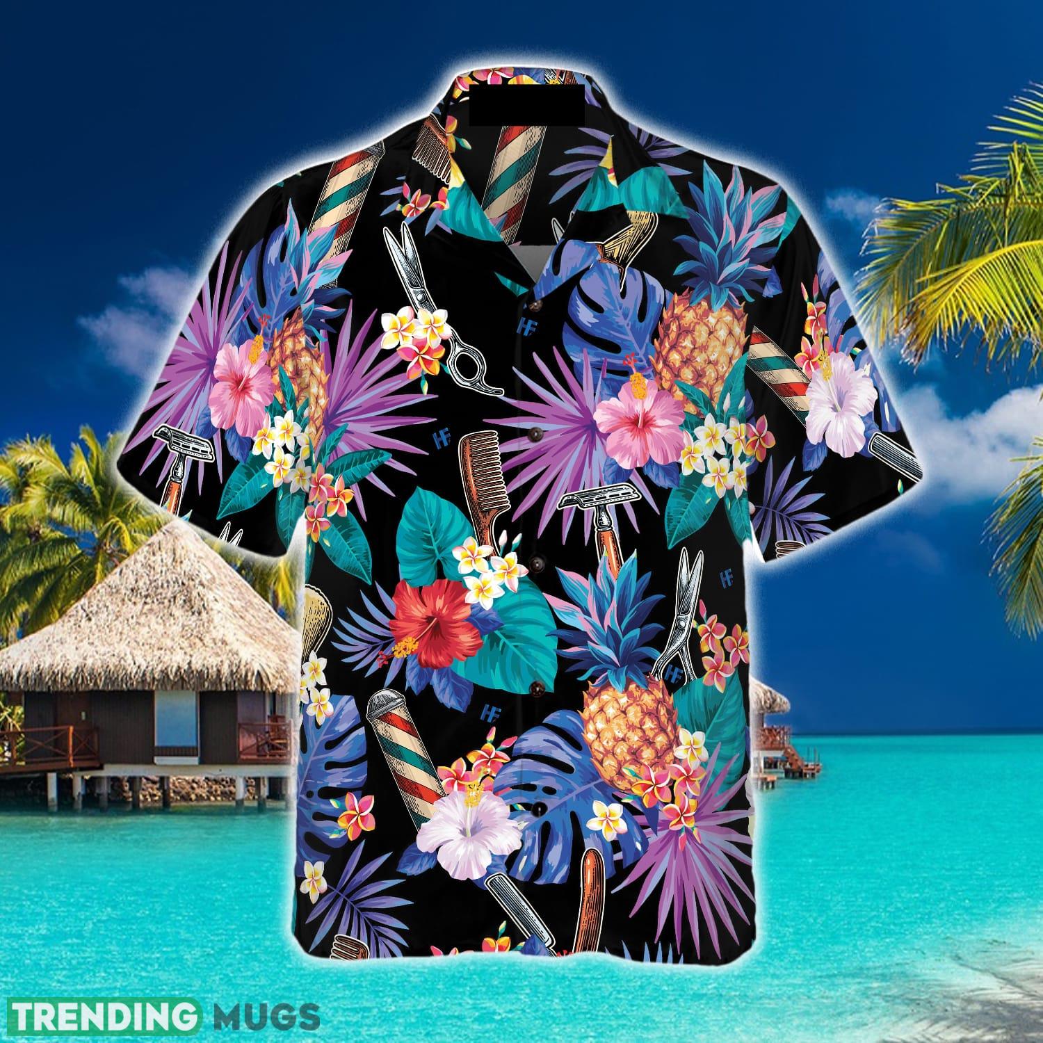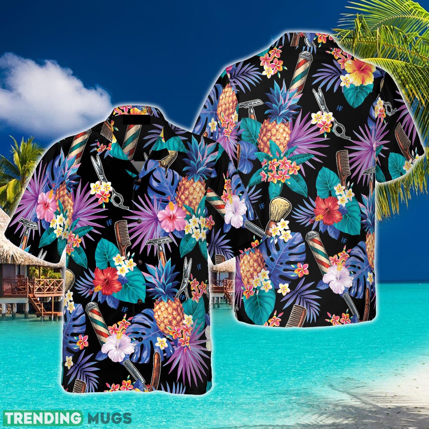 Don’t miss out on this summer essential that effortlessly combines style and comfort. Order your Barber Tools & The Tropical Leaves Hawaiian Shirt today and experience the joy of standing out from the crowd in the most fashionable way possible.