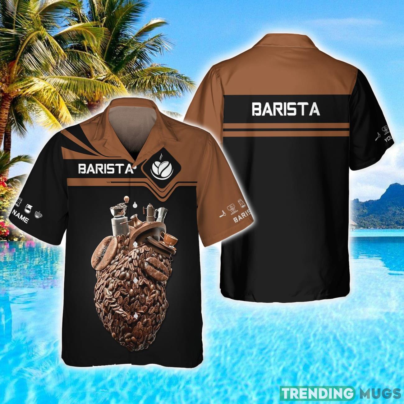 Barista Custom Name 3D Printed Hawaiian Shirt Coffee Beans Personalized Gift For Barista Details: