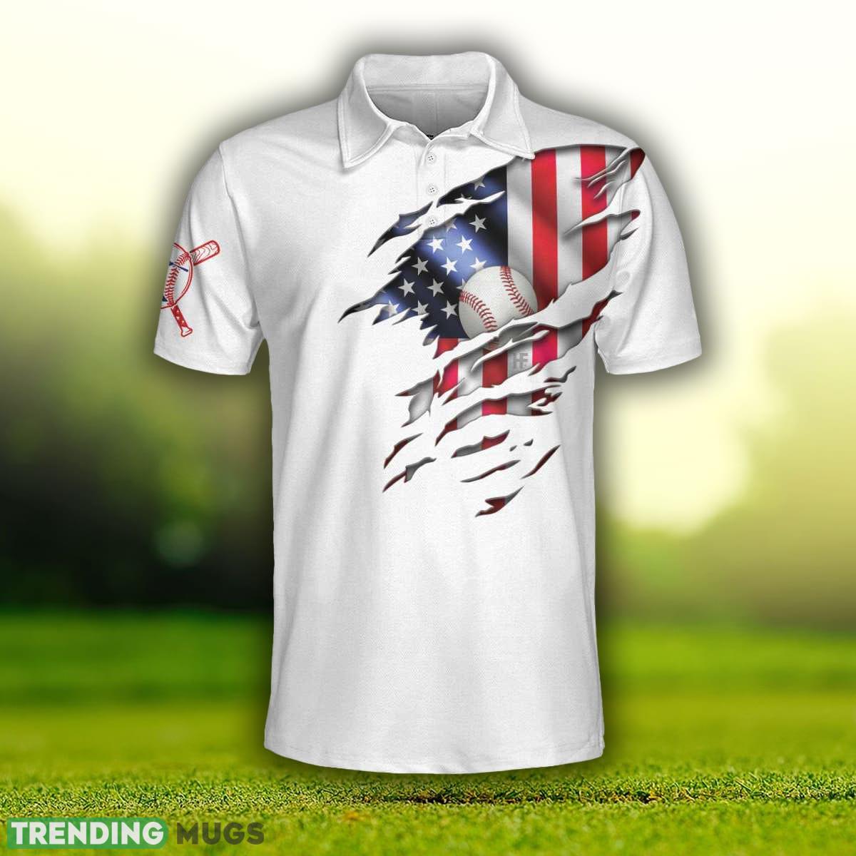 Baseball American Flag, White Baseball USA Flag, Patriotic Baseball Shirt Polo Shirt Polo Shirt