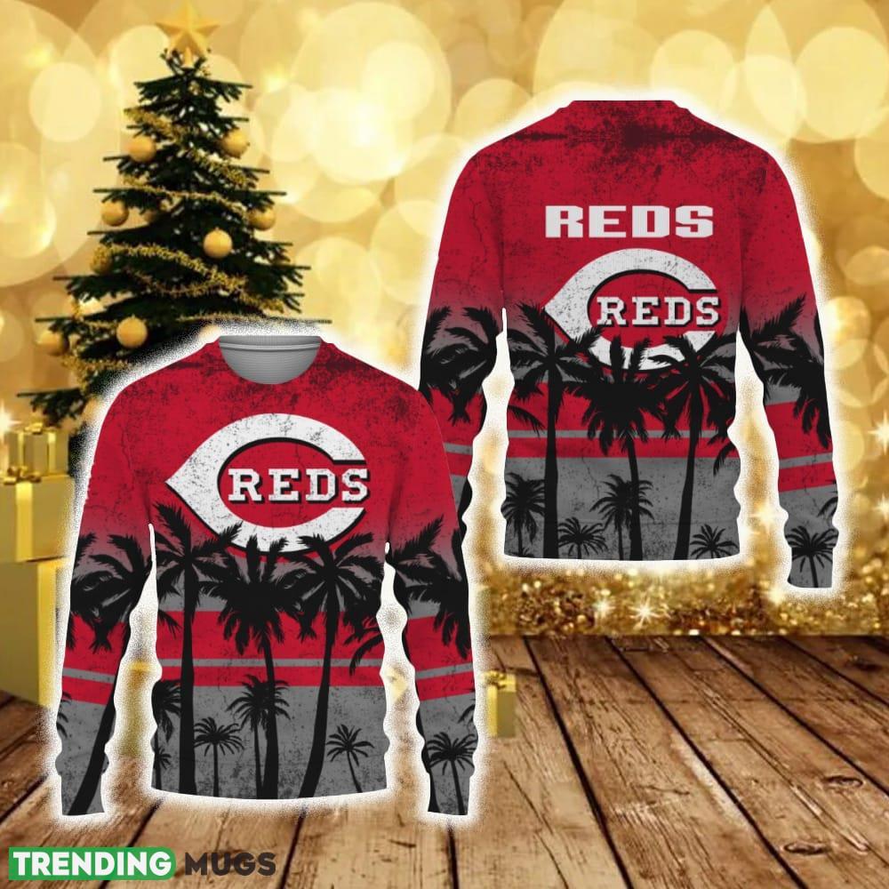 Baseballl American Tree Beach Gradient Gift Cincinnati Reds Coconut Tree Ugly Christmas 3D Sweater - Baseballl American Tree Beach Gradient Gift Cincinnati Reds Coconut Tree Ugly Christmas 3D Sweater