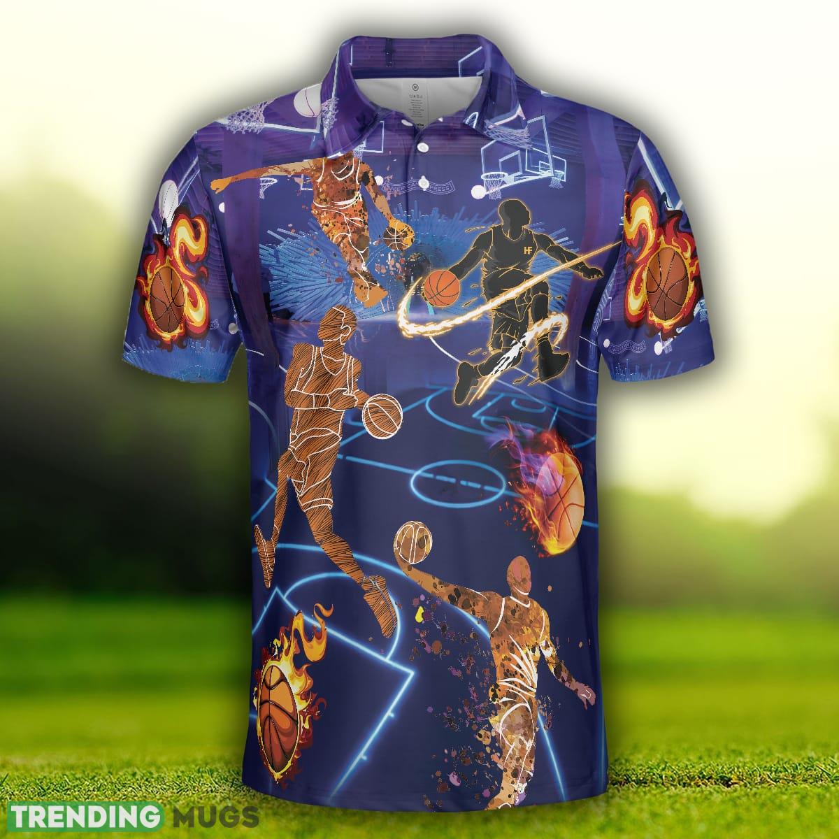 Crafted with utmost precision, our polo shirt showcases a vibrant blue color that perfectly complements your energetic personality. The sleek basketball design on the front effortlessly captures the essence of your passion, making it a must-have for any basketball lover.