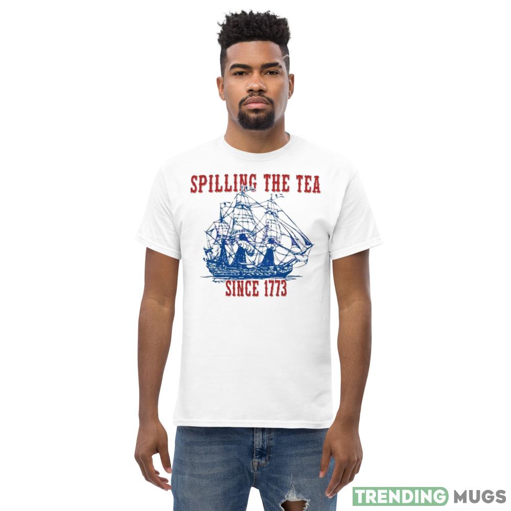 Celebrate this 4th of July in style with our Battleship Spilling The Tea Since 1773 Happy 4th Of July shirt! This unique and trendy shirt is perfect for anyone who loves history and humor. Made with high-quality fabric, this shirt is not only comfortable but also durable, ensuring that it will last for many Independence Day celebrations to come. The bold graphic design featuring a battleship spilling tea is sure to turn heads and spark conversation. Plus, the patriotic colors of red, white, and blue make this shirt the perfect addition to any 4th of July outfit. Get ready to show off your American pride and sense of humor with our Battleship Spilling The Tea Since 1773 Happy 4th Of July shirt!