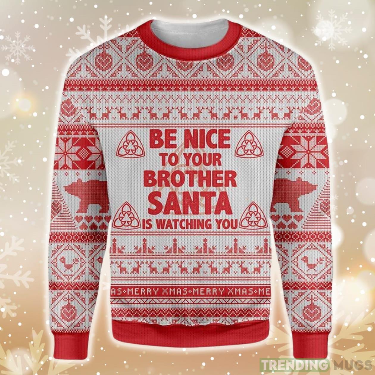 Not only is this sweater stylish, but it also spreads a heartwarming message. “Be Nice To Your Brother” serves as a reminder to cherish the bond between siblings during the holiday season and beyond.