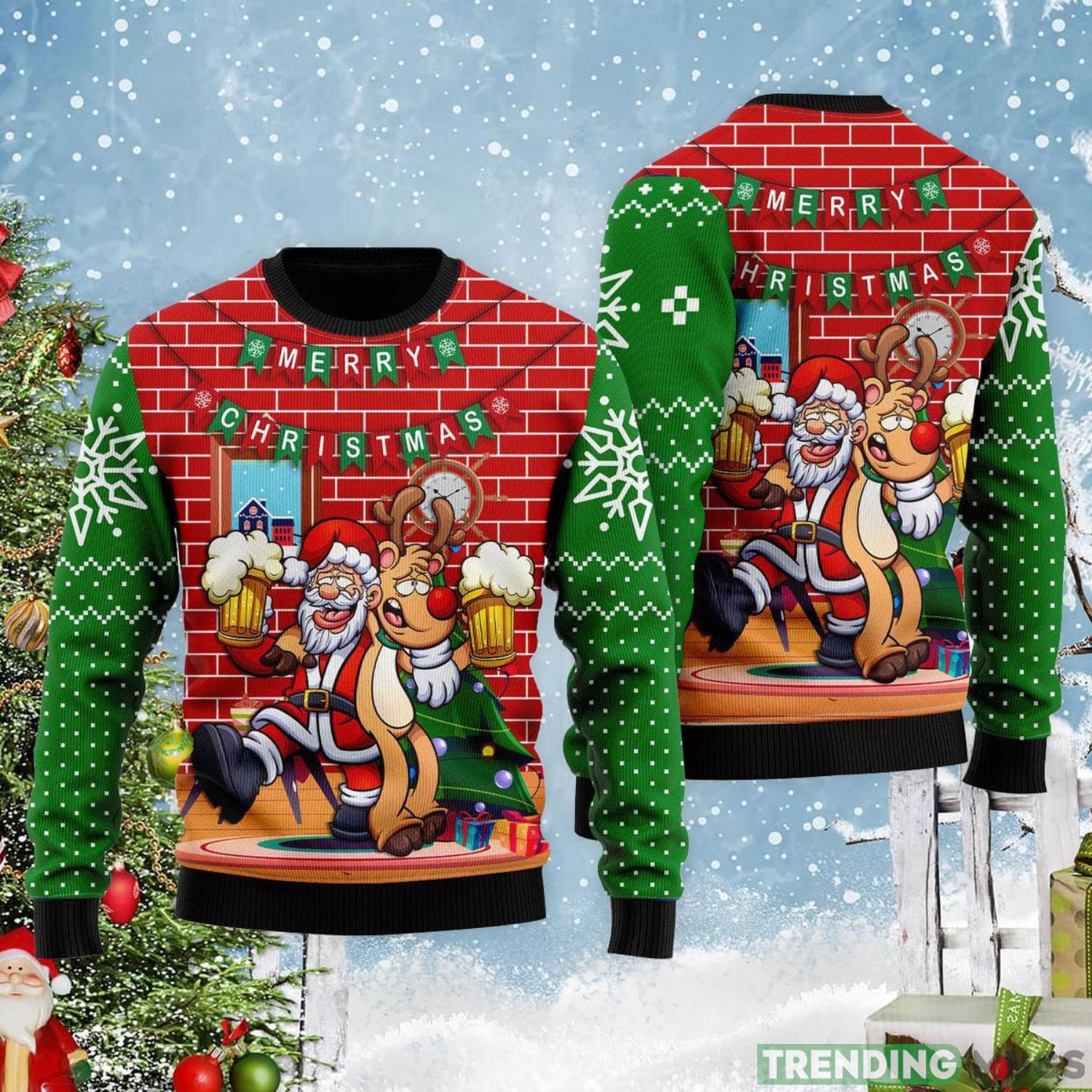 Beer Lover Funny Santa Drink Beer With Reindeer Ugly Christmas Sweater Informations: