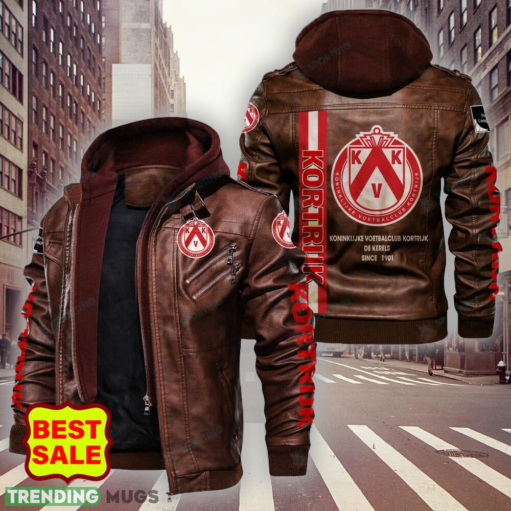 Keeping yourself warm and comfy in the cold weather is a big concern. This Belgium Team KV Kortrijk Design 5 Teams Logo Brown And Black Leather Jacket is one of the top choices to solve this problem. It can protect you from the wind and rain in the rainy season. It is also suitable for outdoor activities, such as skiing, camping, hiking, and snowboarding. This lightweight jacket is easy to wear and convenient for you. It is also a fashionable and comfortable jacket that can bring you a great look.