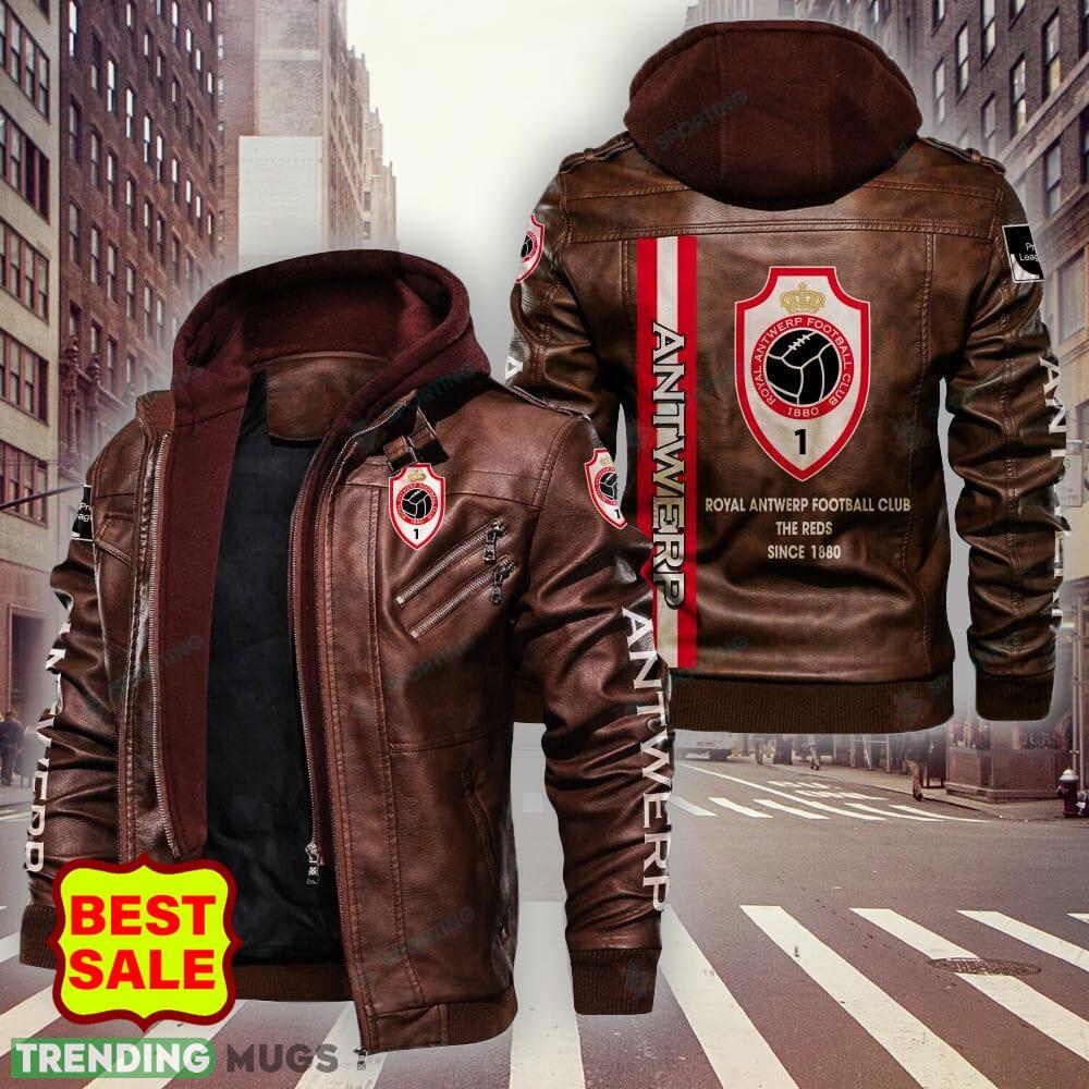 Belgium Team Royal Antwerp FC Logo 9 Brown And Black Leather Jacket For Men And Women 2D Leather Jacket