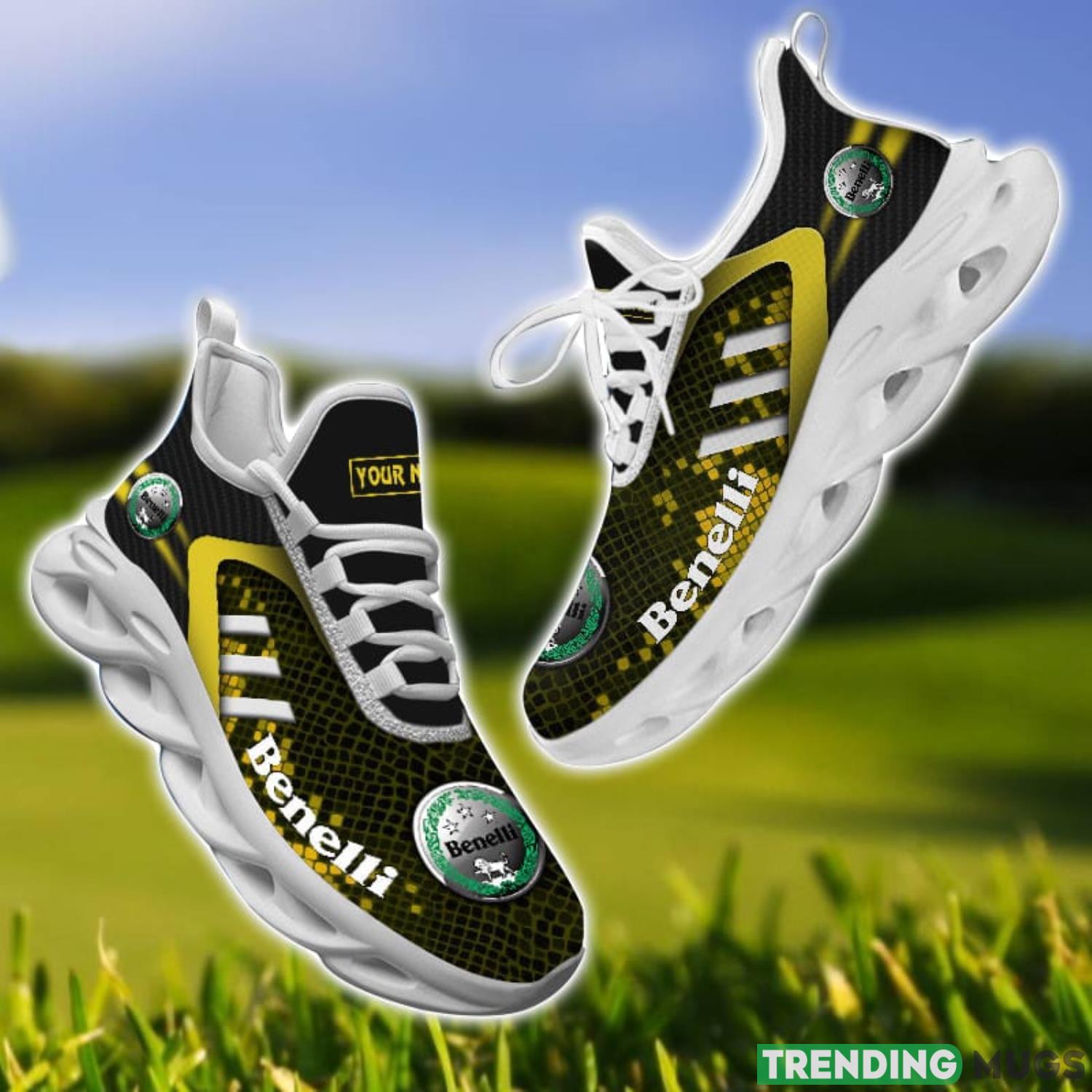 Elevate your style game with the Benelli Yellow Striped Max Soul Shoes Personalized Name For Fans! These trendy sneakers are the perfect way to show off your love for Benelli while adding a unique touch with personalized name detailing. Made with high-quality materials and a comfortable fit, these shoes are sure to become your go-to footwear choice. Stand out from the crowd and step up your fashion game with the Benelli Yellow Striped Max Soul Shoes!