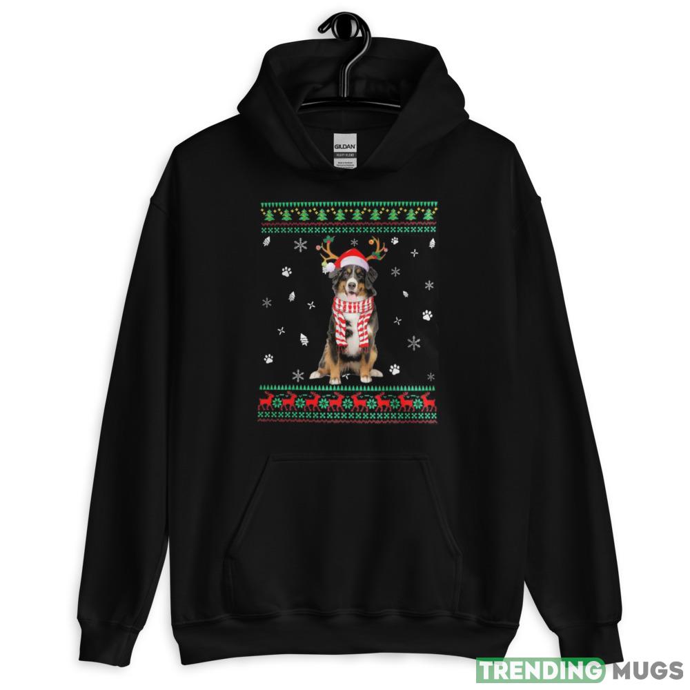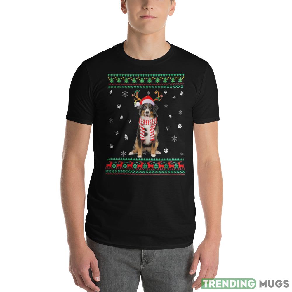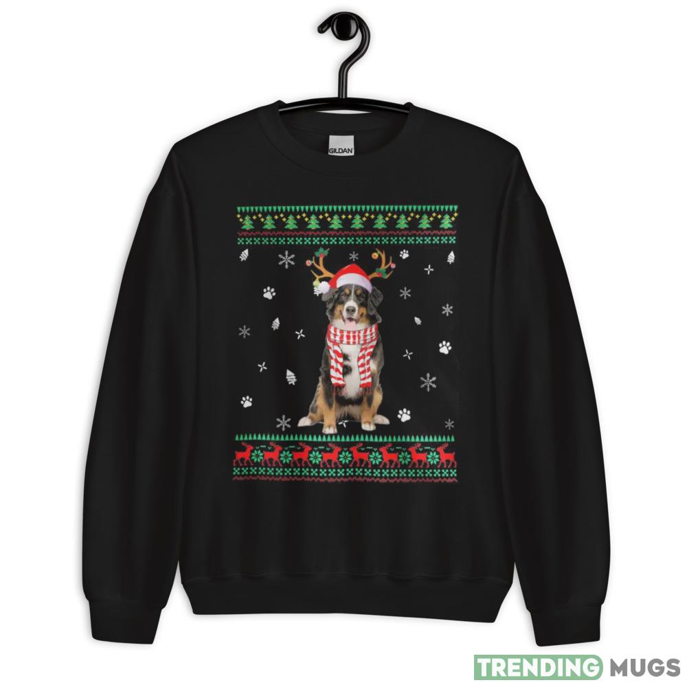 Bernese Mountain Santa Reindeer Dog Ugly Christmas Sweatshirt Dark Shirt