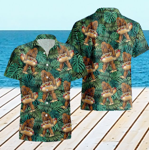 Bigfoot Carrying Hot Dog Hawaiian Shirt Hawaiian Dog Shirt Sasquatch Shirt Funny Hot Dog Shirt – 060623-092931
