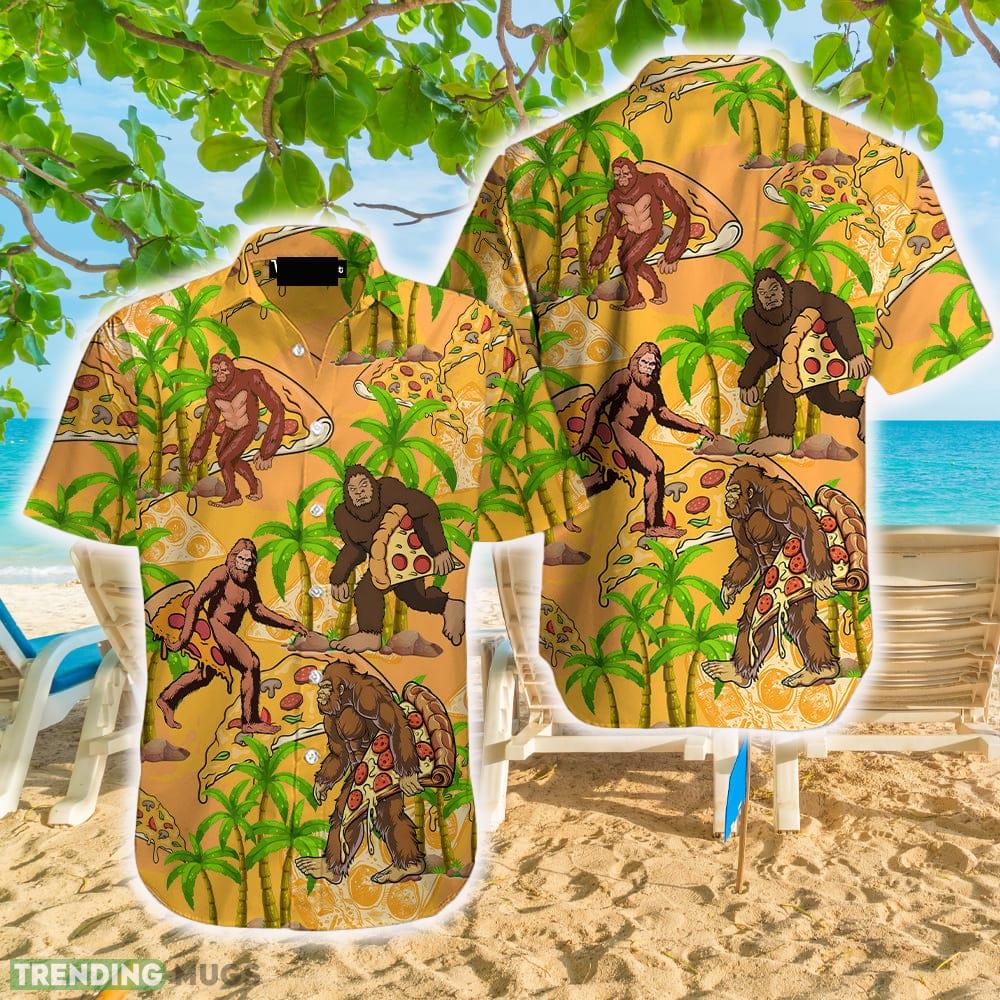 BigFoot Eating Pizza Palm Trees Hawaiian Shirt Aloha Casual Shirt For Men And Women Details: