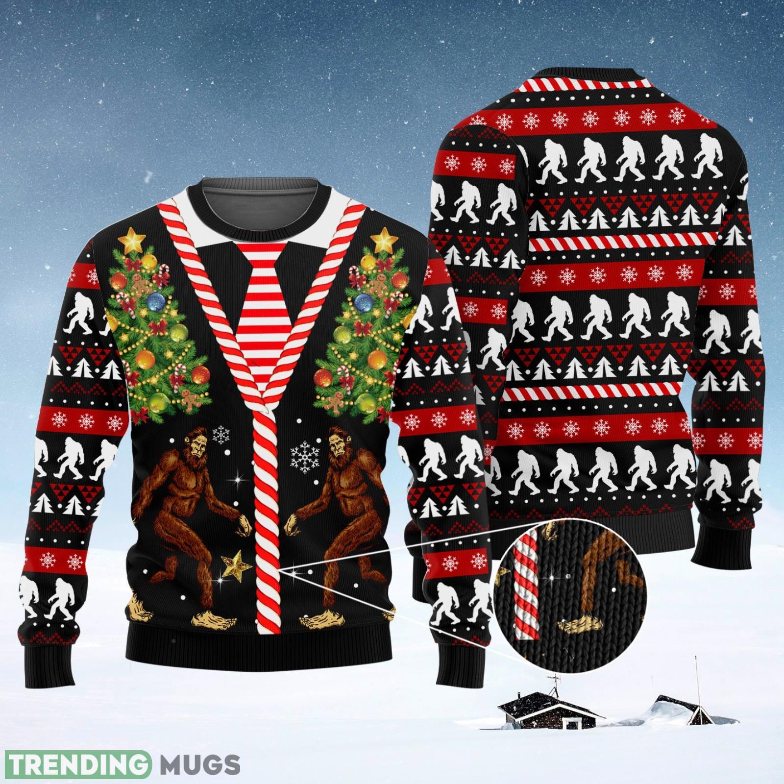 Get ready to stand out at all your holiday parties with our Bigfoot Pattern Cute Ugly Christmas Sweater! This unisex 3D sweater is the perfect Christmas gift for yourself or a loved one who loves to embrace their quirky side during the festive season.