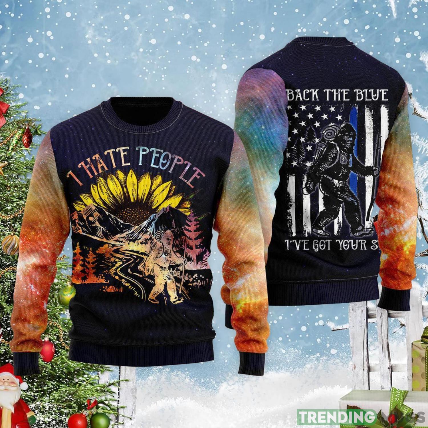 Bigfoot Sunflower I Hate People American Flag Ugly Christmas Sweater