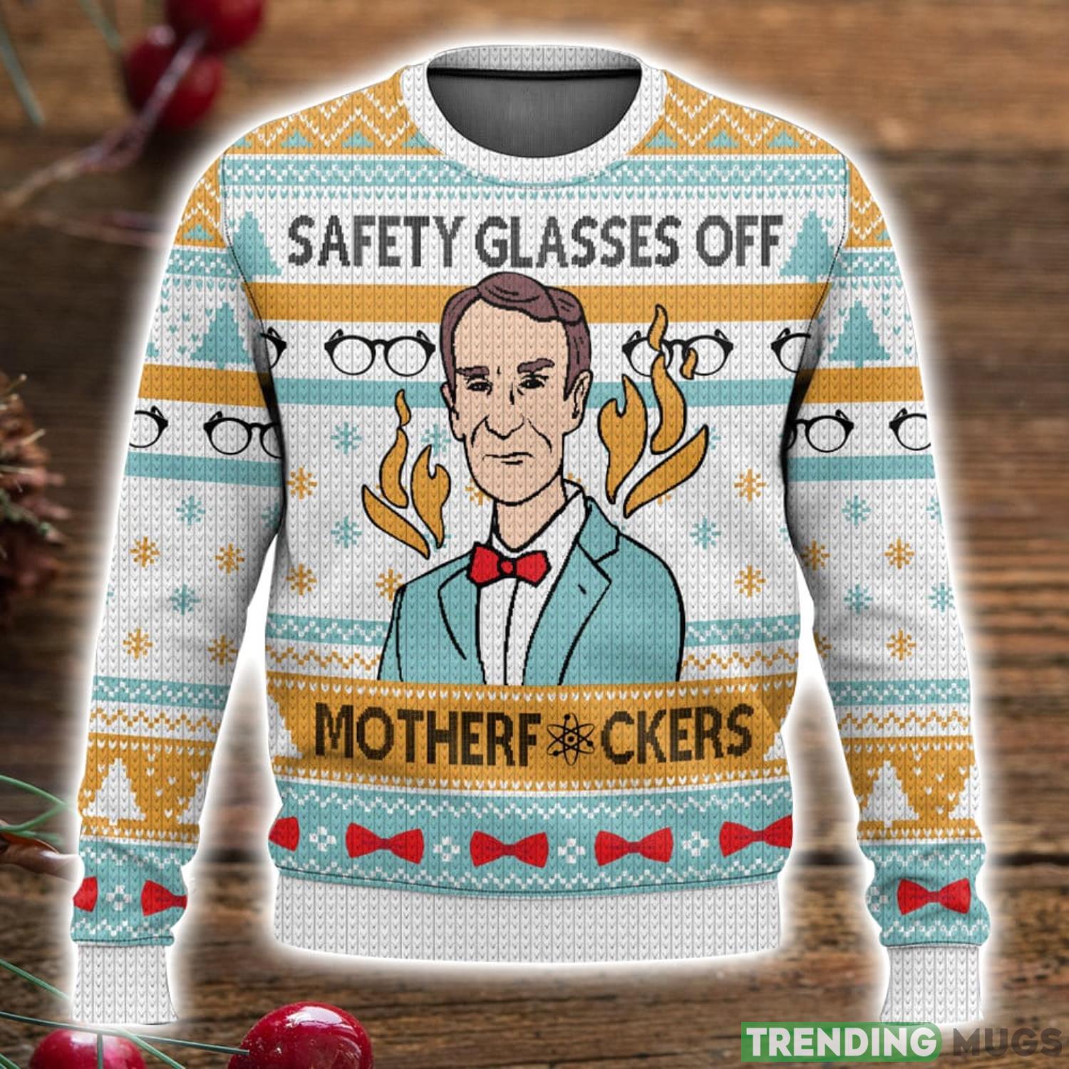 Bill Nye Safety Glasses Off Motherfckers Ugly Christmas Sweater 3D All Over Printed Christmas Sweater Informations: