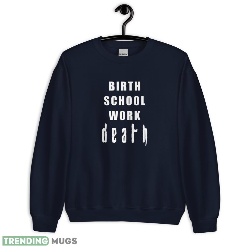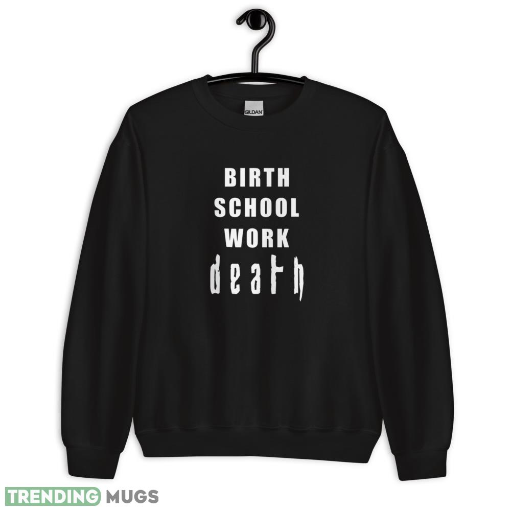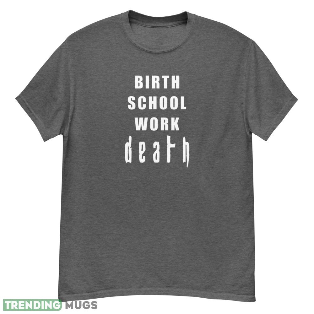 In summary, the Birth School Work Death white shirt is a timeless and classic piece that is perfect for any occasion. The shirt is made from high-quality materials, ensuring that it will last for years to come. It is comfortable to wear, easy to style, and versatile, making it a must-have for anyone who appreciates quality and style.
