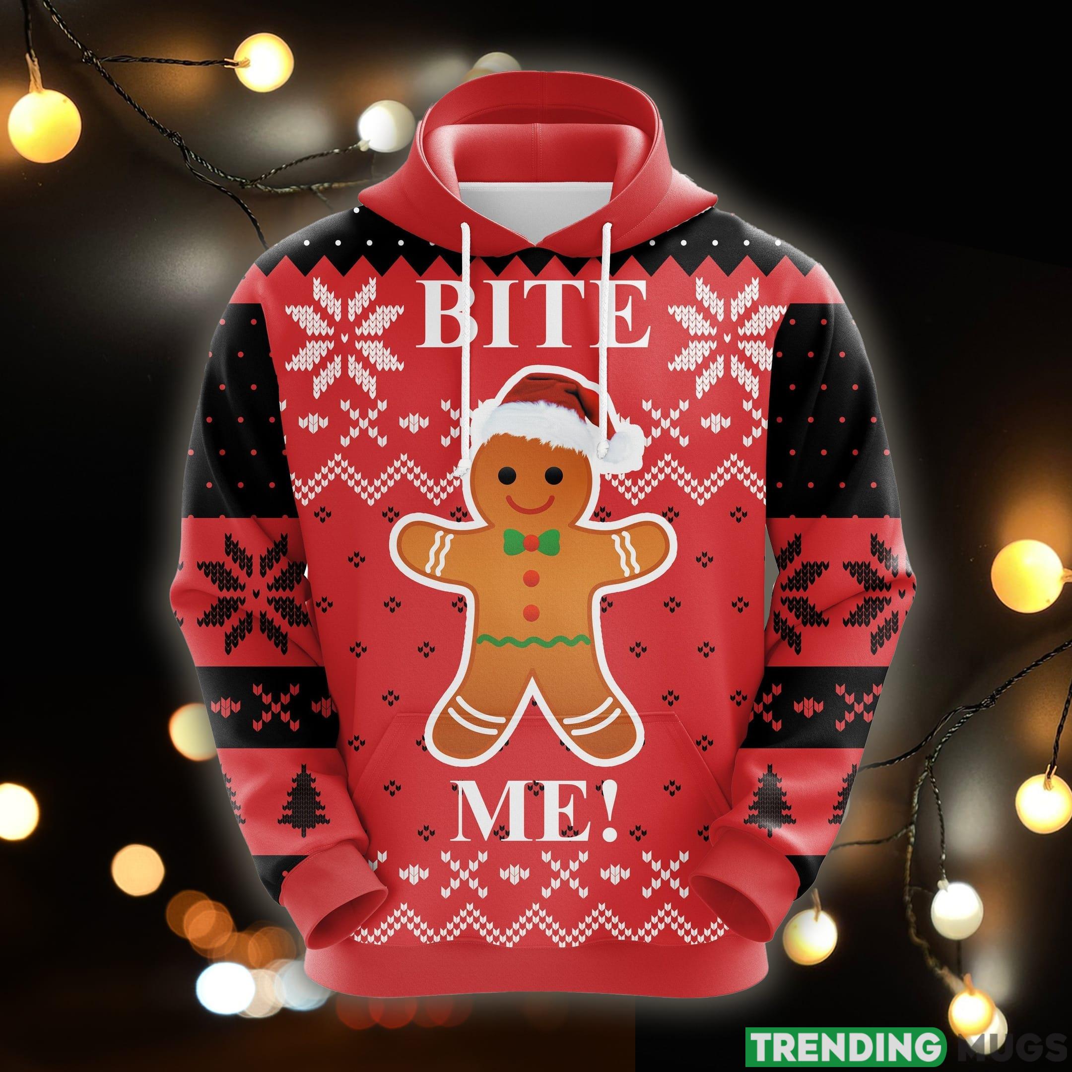 Some of the Bite Me Christmas Cute Noel Mc Ugly 3D Hoodie All Over Print Gift For Men Women photos