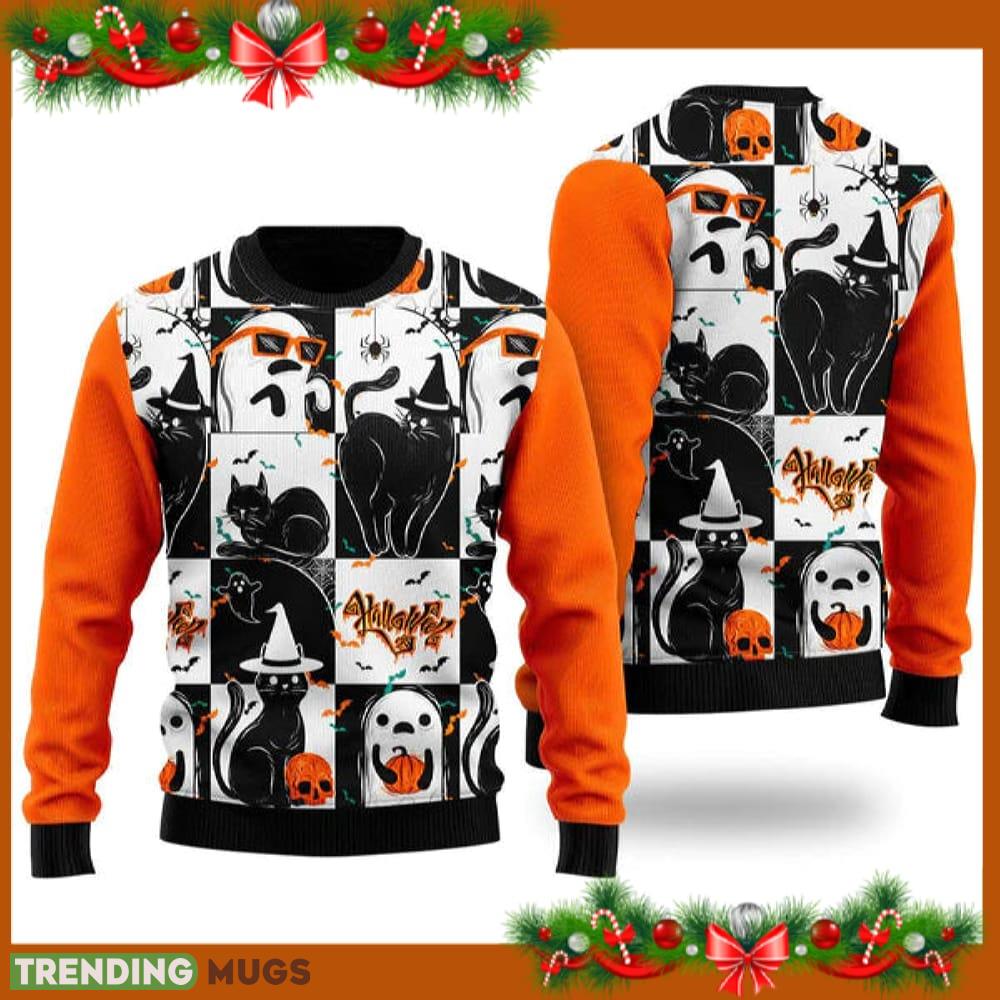 Black Cat and Ghost Halloween Ugly Christmas Sweater Funny Gift For Men And Women Family Holidays Informations: