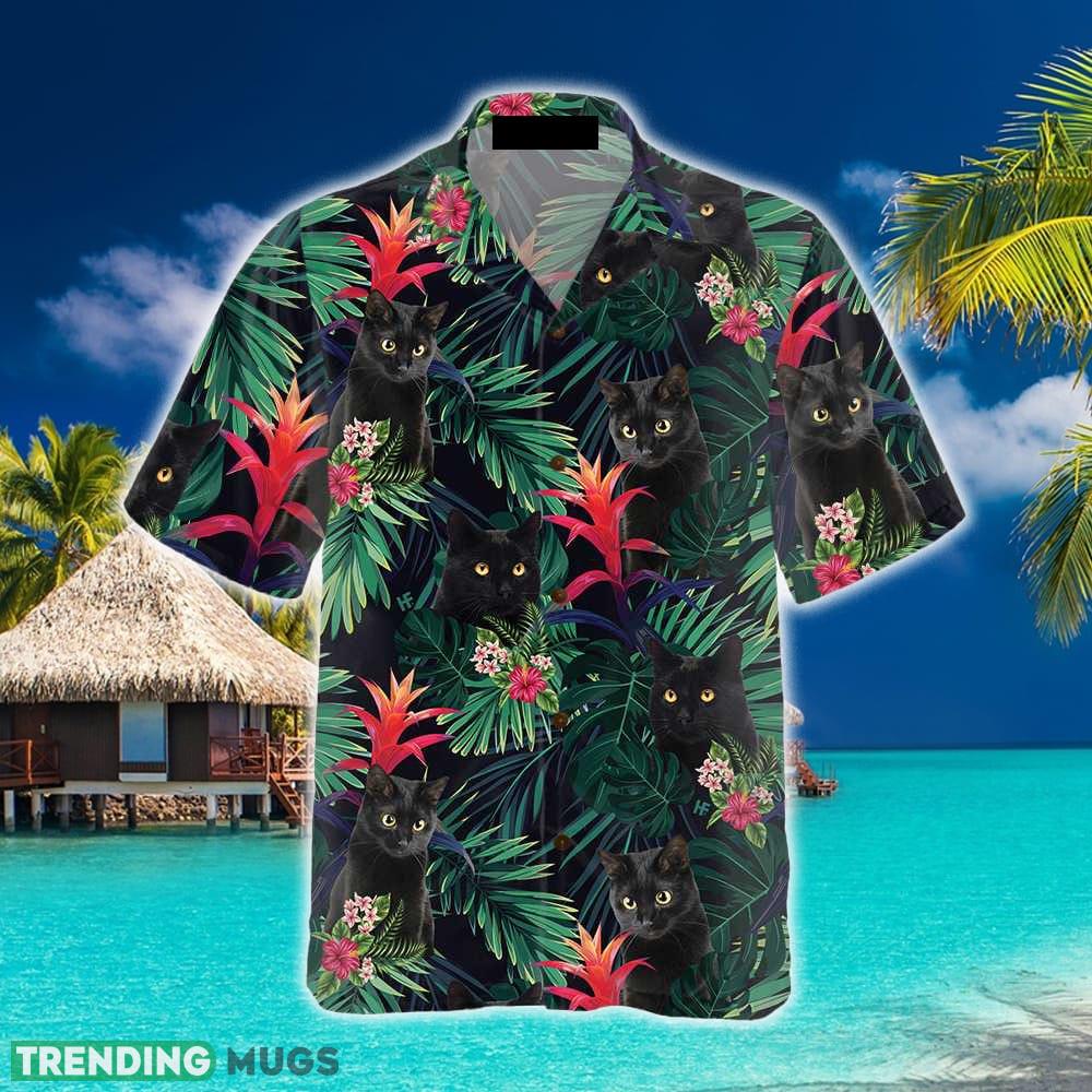 Black Cat And Tropical Pattern Hawaiian Shirt Summer Beach Gift For Men And Women Details: