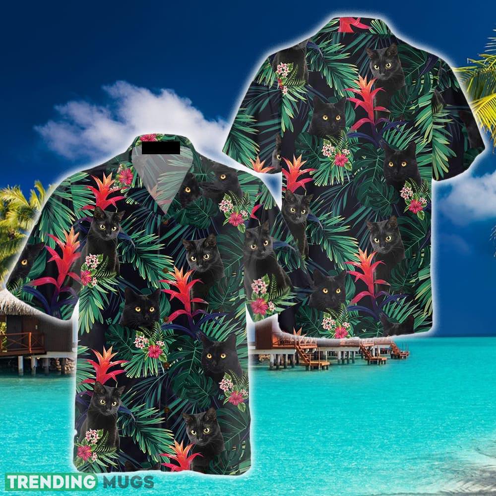 Black Cat And Tropical Pattern Hawaiian Shirt Summer Beach Gift For Men And Women - Black Cat And Tropical Pattern Hawaiian Shirt, Funny Black Cat Shirt For Adults, Cat Themed Gift For Cat Lovers_1