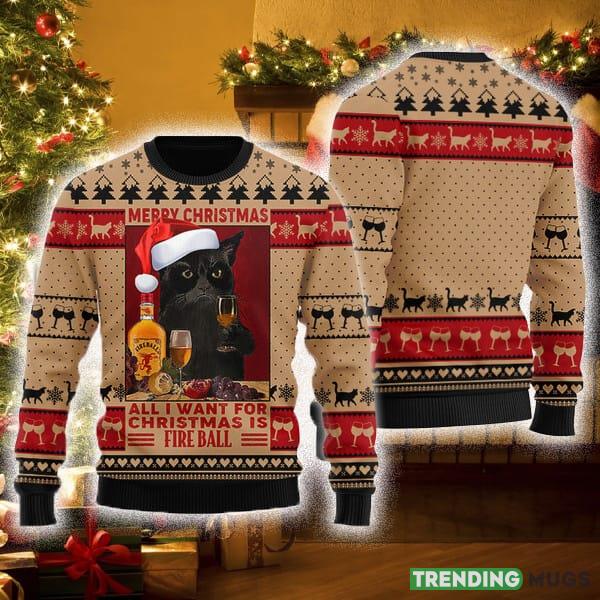 Black Cat Drinking Fireball Ugly Christmas Sweater For Men And Women Informations: